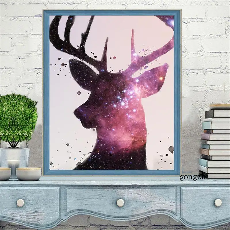 Алмазная вышивка 5D с изображением леса, лося, оленя, домашний деко...