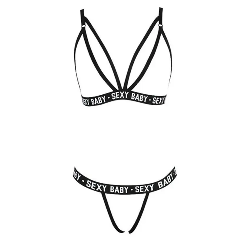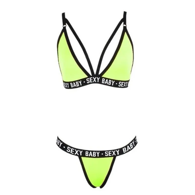 Сексуальный комплект нижнего белья для женщин, эротическое бикини с принтом алфавита, Трехточечное бикини, купальник, бюстгальтер пуш-ап, спортивный корсет, красный комплект нижнего белья