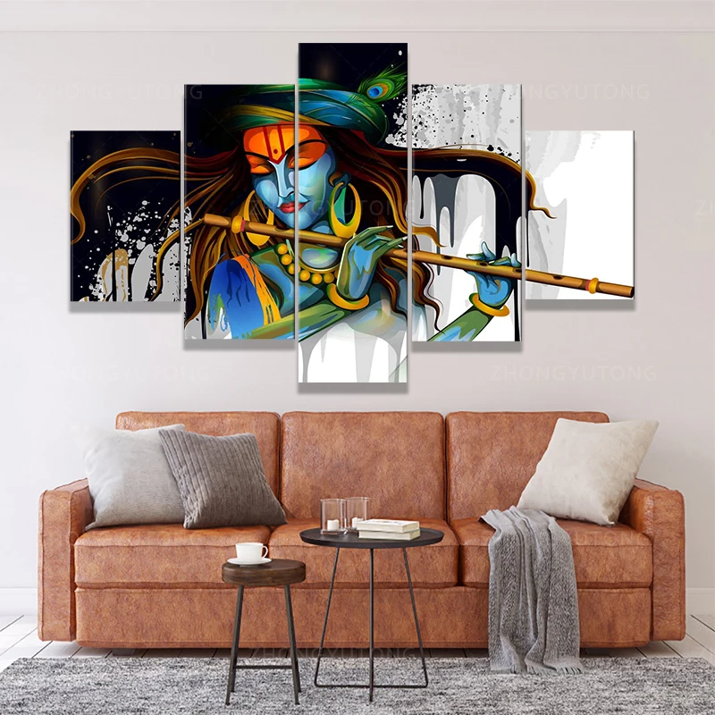 Индуистский декор стен лорд Кришна картины индийские стены искусства 5 шт. несколько панелей холст божество индуизм искусство домашний декор для L