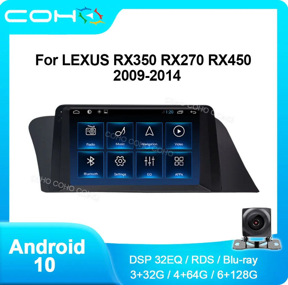 COHO для LEXUS RX350 RX450 RX270 2009-2014 Android 10 4G Автомобильный радиоплеер навигация GPS Octa Core 8G 256G радио мультимедиа