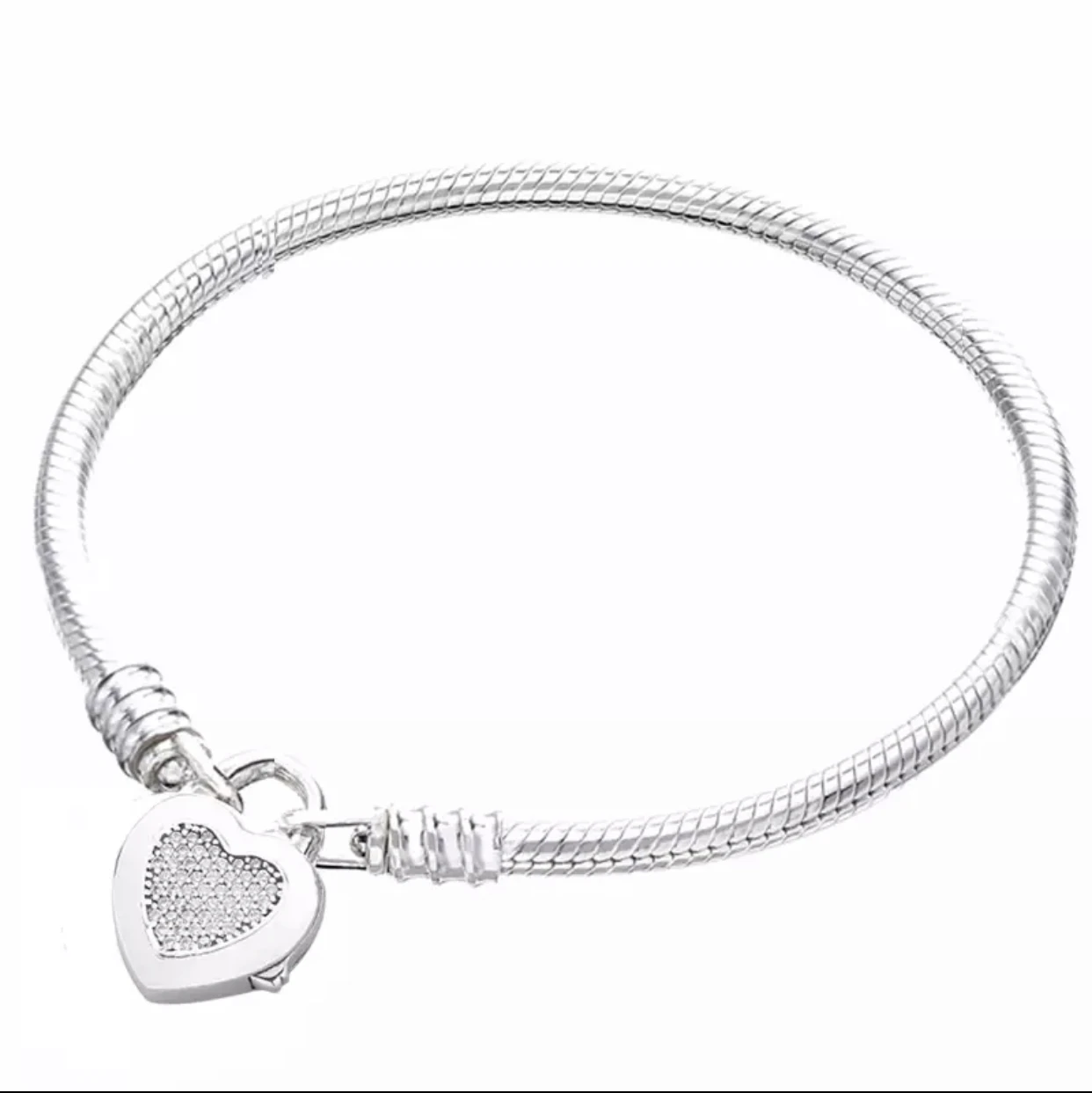 Браслет Pandora женский из серебра 925 пробы с замком в виде сердца