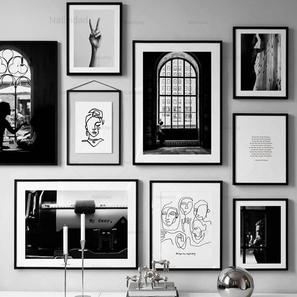 Абстрактная Картина на холсте Черно-белая ретро окно ручная печать плакаты женщина задний вид печать картины в скандинавском стиле