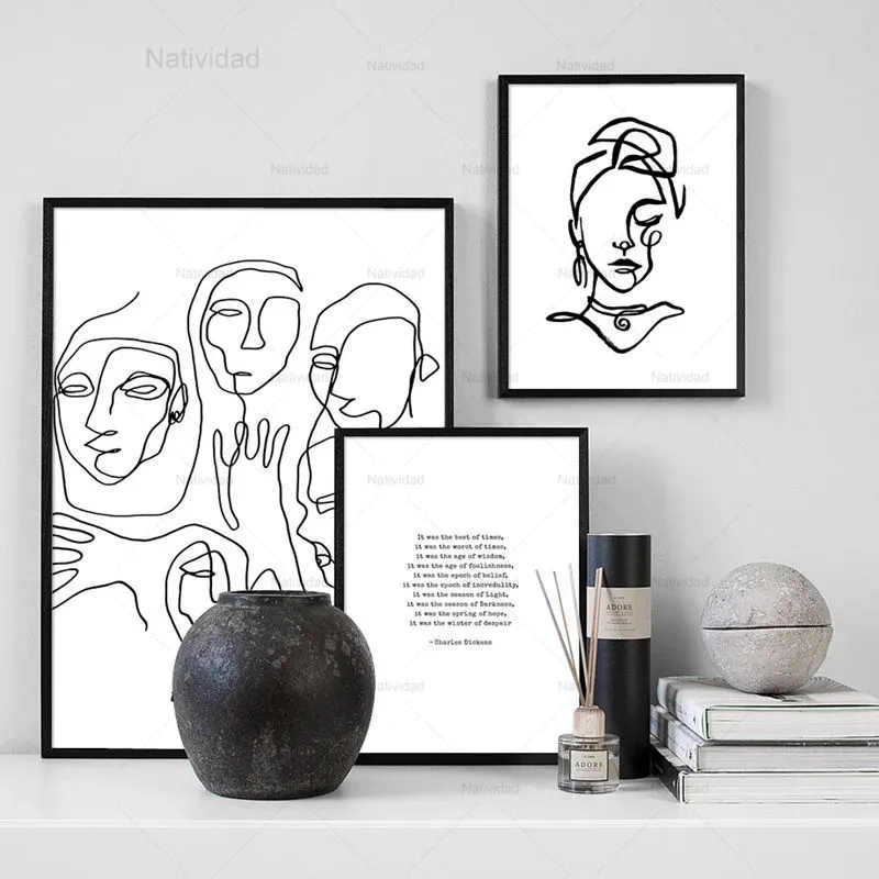 Настенная картина с животными, абстрактное искусство, одна линия
