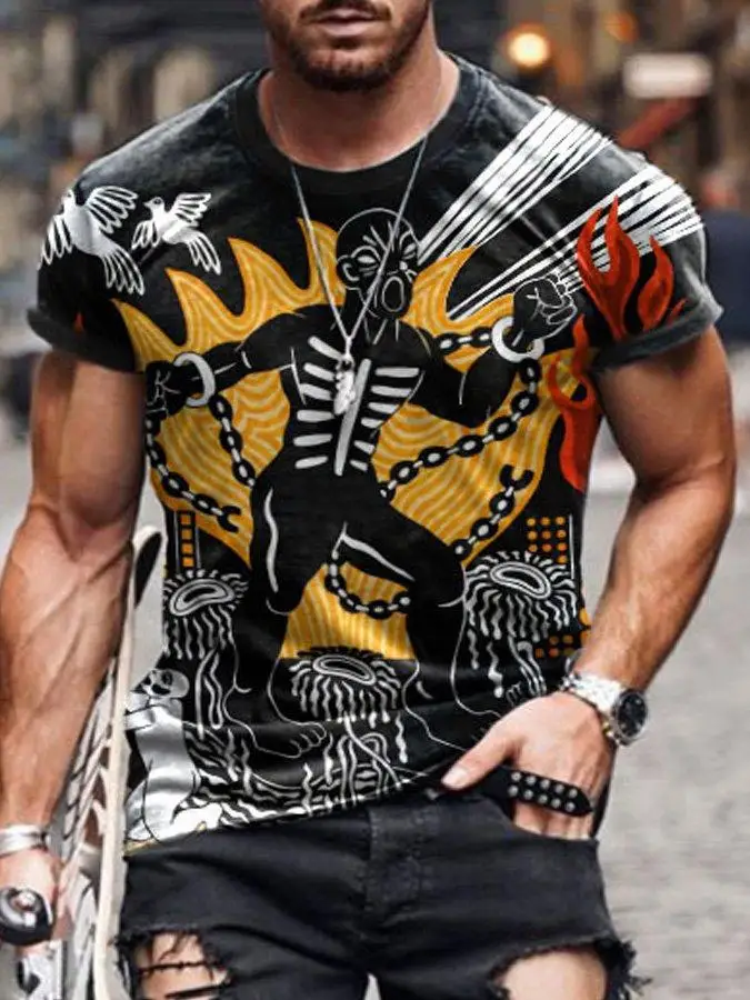 Футболка мужская с круглым вырезом, коротким рукавом и 3D-принтом