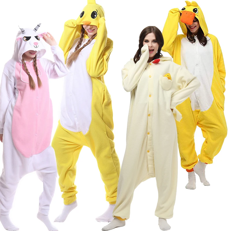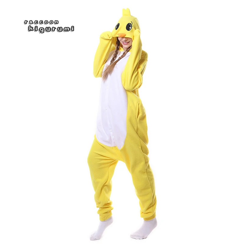 Флисовые комбинезоны с животными для мальчиков и девочек, зимняя Рождественская Пижама унисекс с маленькой желтой курицей для косплея, кигуруми енота для взрослых