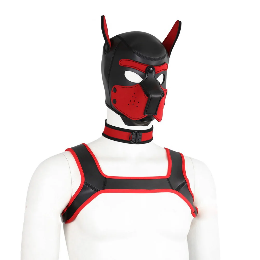 Маска с капюшоном для щенков и собачек, ошейник для шеи, БДСМ, мужской нагрудный ремень, сексуальный костюм, собачья роль раба, игра, фантазия, набор, секс-игрушка