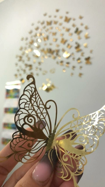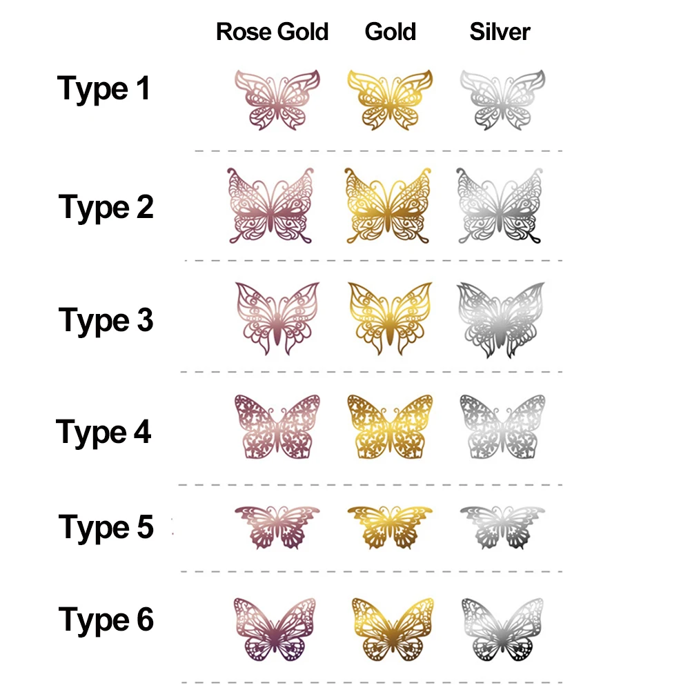 12 шт.упак. 3D наклейки с вырезами в виде бабочек, золотыесеребряныерозовые Золотые Зеркальные наклейки, металлическая текстура, настенное искусство, товары для свадебной вечеринки