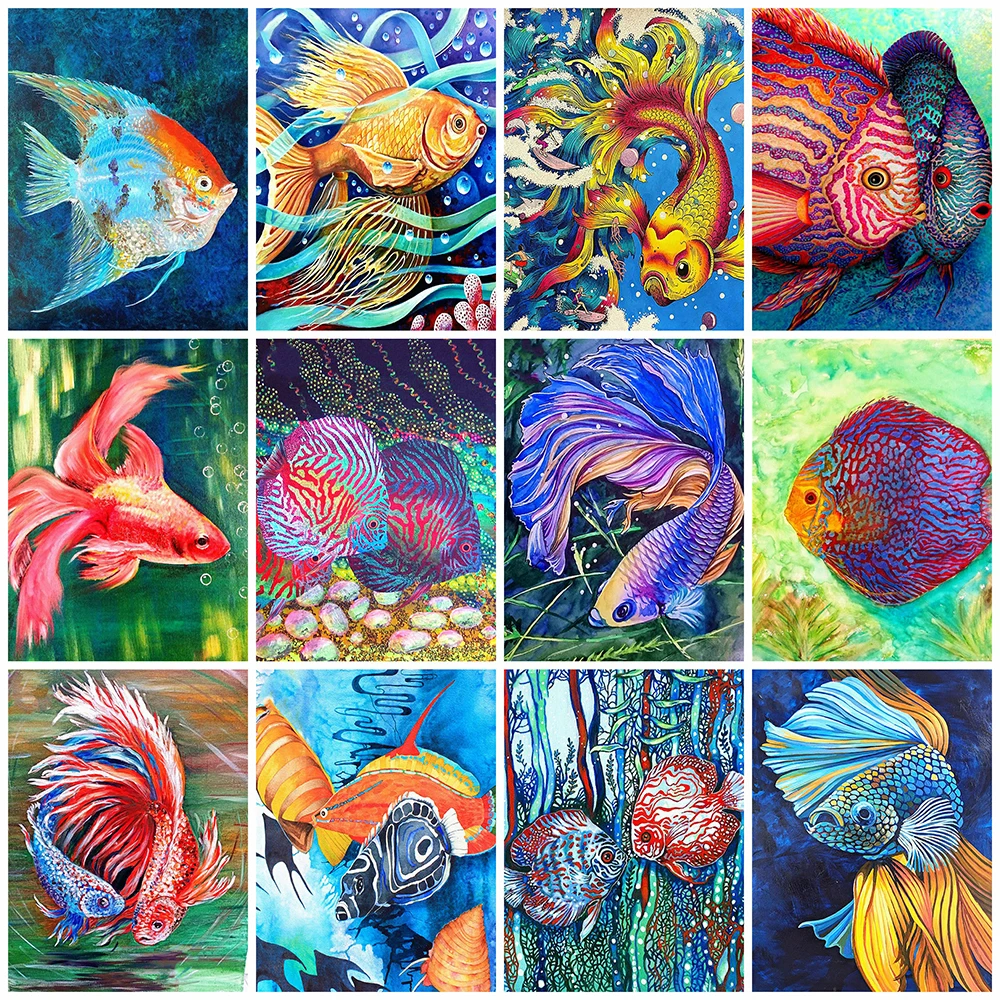 Алмазная живопись 5d HUACAN сделай сам, мозаика с изображением рыбы, полная вышивка, животное, домашний декор, ручная работа