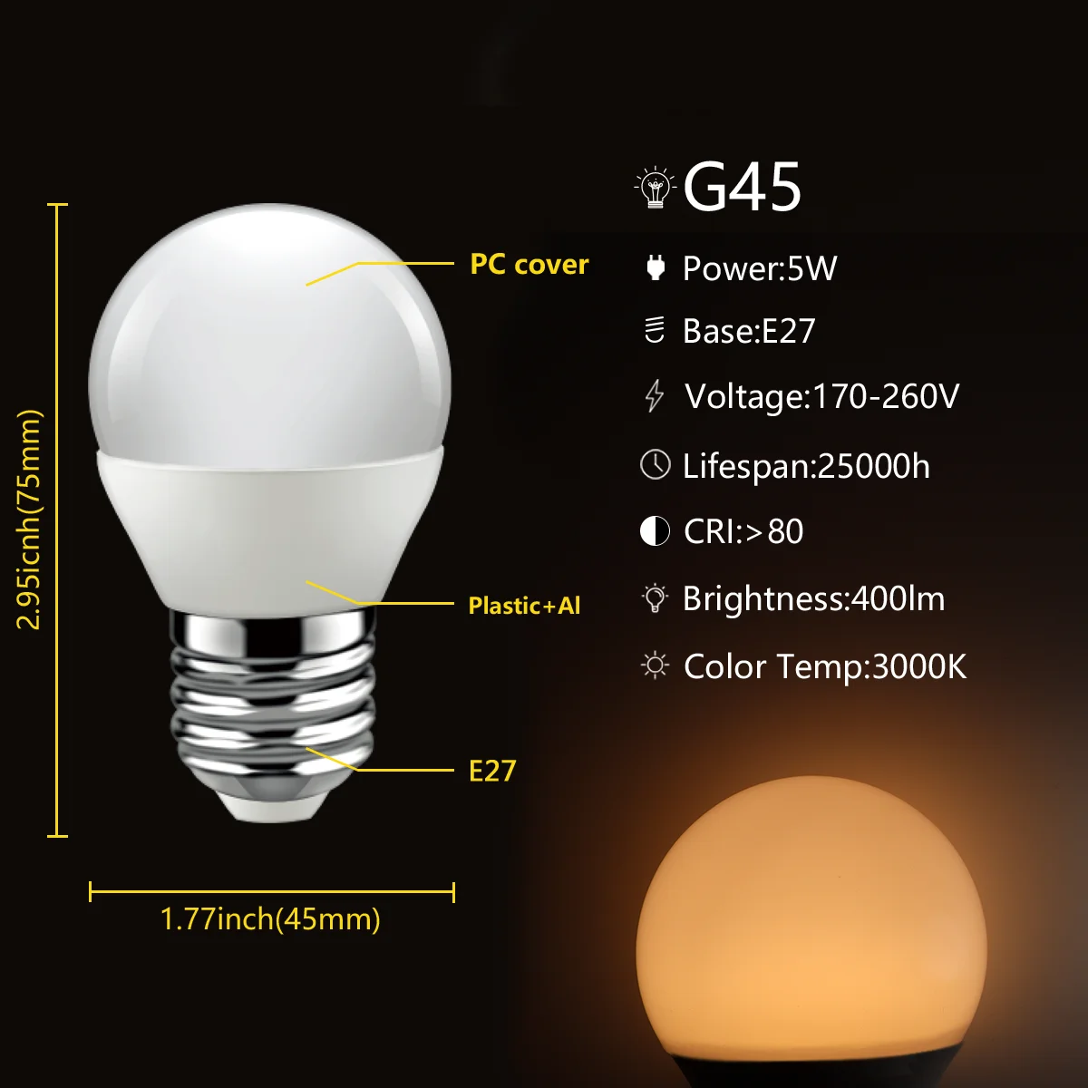 Светодиодная лампа для украшения дома, офиса, 6 шт.лот, G45, 5 Вт, ...