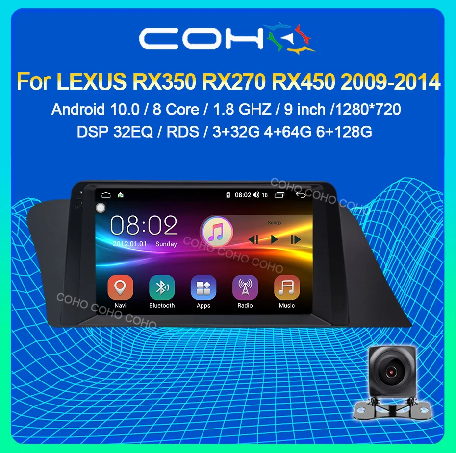 Автомобильная Мультимедийная система COHO для LEXUS RX350, RX270, RX450, 2009-2014, Android 10,0, 4G, GPS, Восьмиядерный процессор, 6 ГБ + 128 ГБ