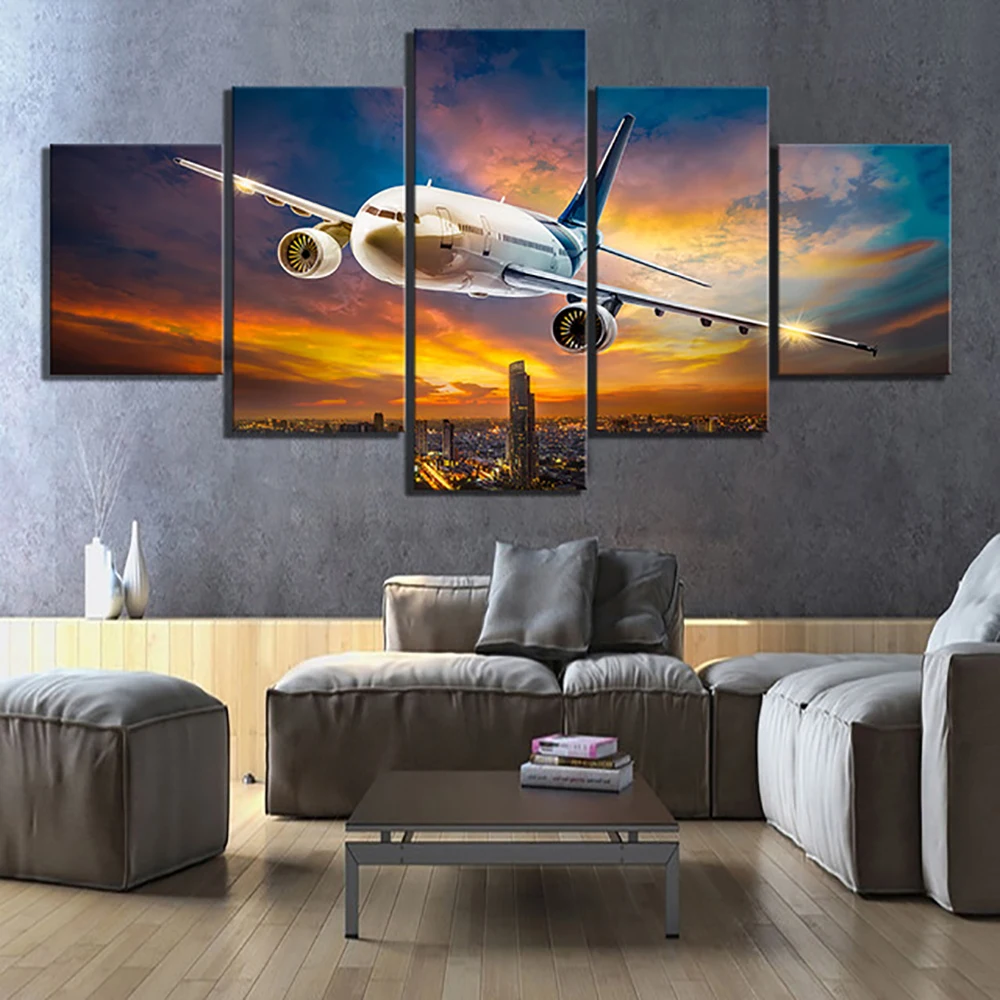 Современный постер на холсте с самолетом, художественная роспись, з...