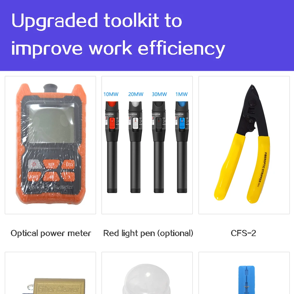 Примечание:Уважаемые покупатели, это самые Экономичные Наборы инструментов. Диапазон измерения OPM-70 от-70 до + 6 дБм, OPM-50-от-50 до + 26 дБм, угол резки волоконного резца находится в пределах 1 градуса, это не для сращивания, это для быстрых разъемов, если вам нужна высокая точностьВолоконный Кливер, вы можете оставить сообщение, мы можем изменить цену для высокой точности. Мы не доставим батареи в посылку по причине безопасности, пожалуйста, обратите внимание. Спасибо