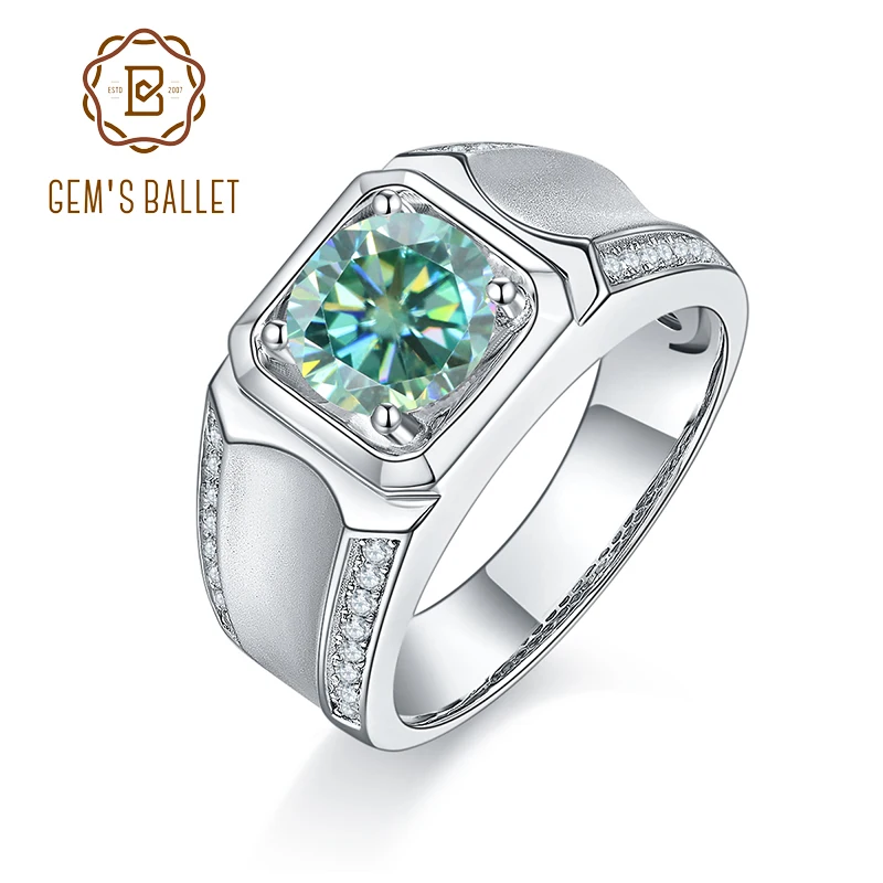 Мужское кольцо с мусанитом GEM'S BALLET, серебристое кольцо зеленого цвета, 1 карат, Ювелирное Украшение в современном стиле для годовщины отца, подарок на день отца