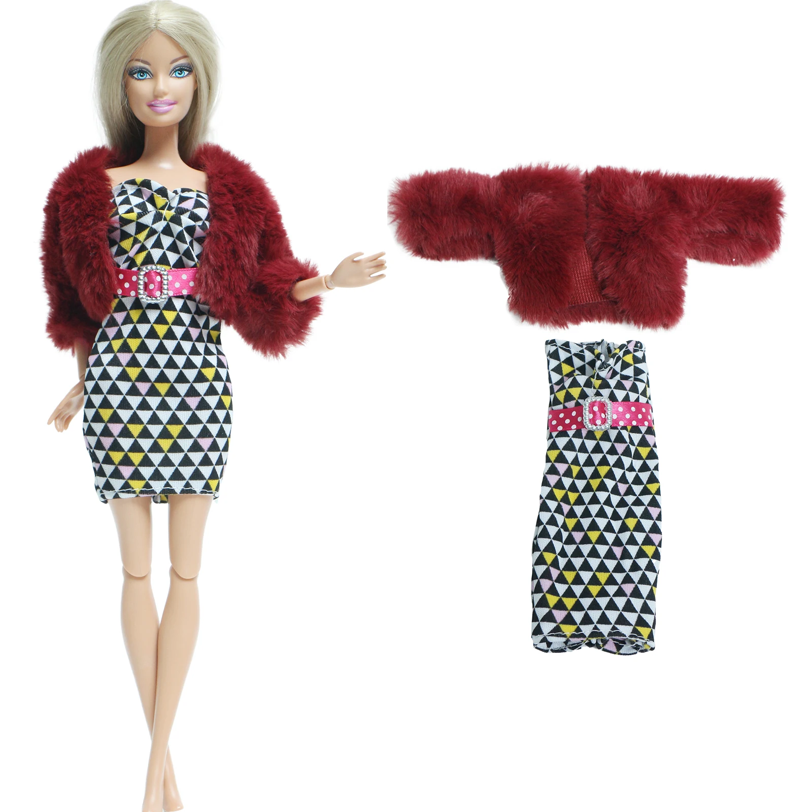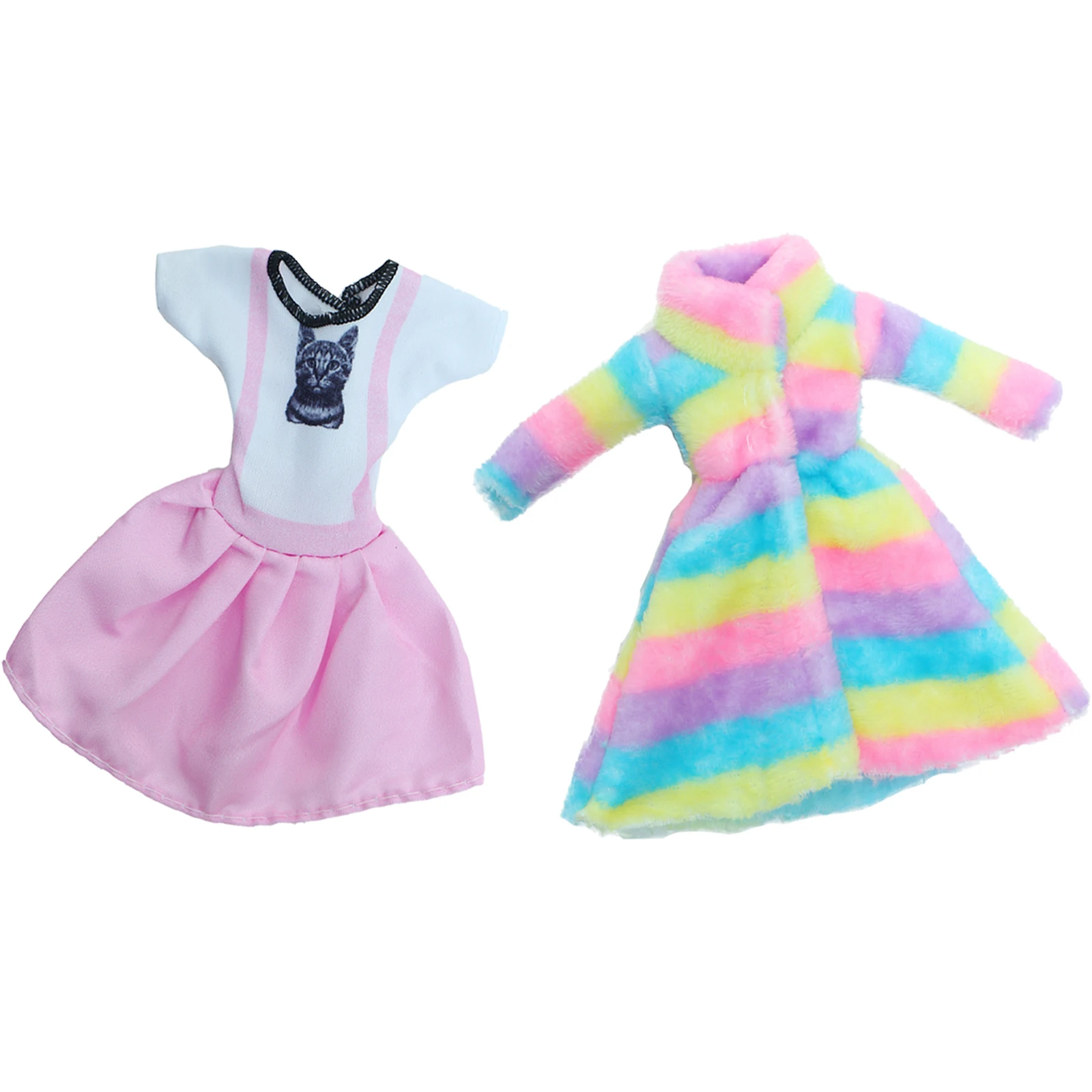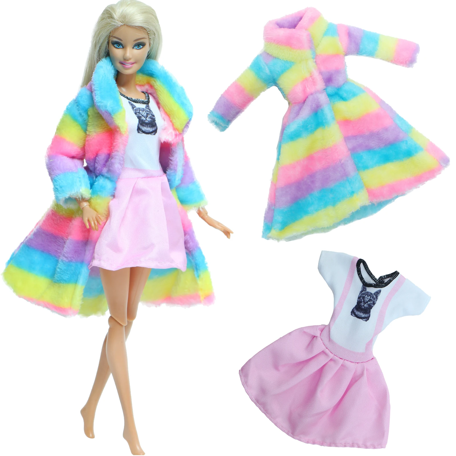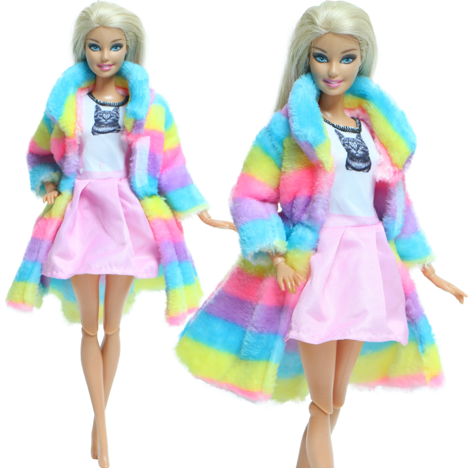 Кукольное платье ручной работы для куклы Барби, цветное меховое пальто, розовое милое мини-платье в виде кошки, юбка, повседневный наряд, одежда, детские игрушки, аксессуары