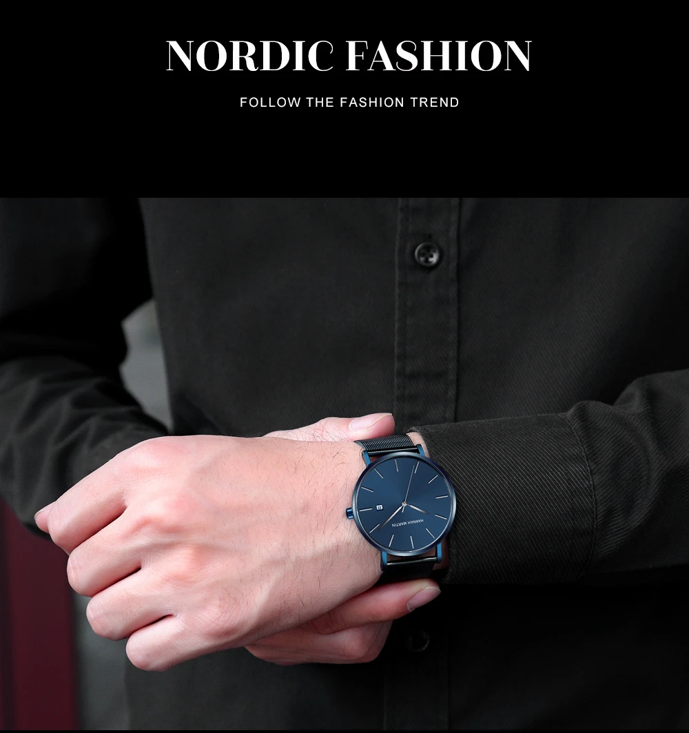 Часы наручные мужские с календарем, простые деловые Роскошные с ремешком из нержавеющей стали, в японском стиле, t, черные