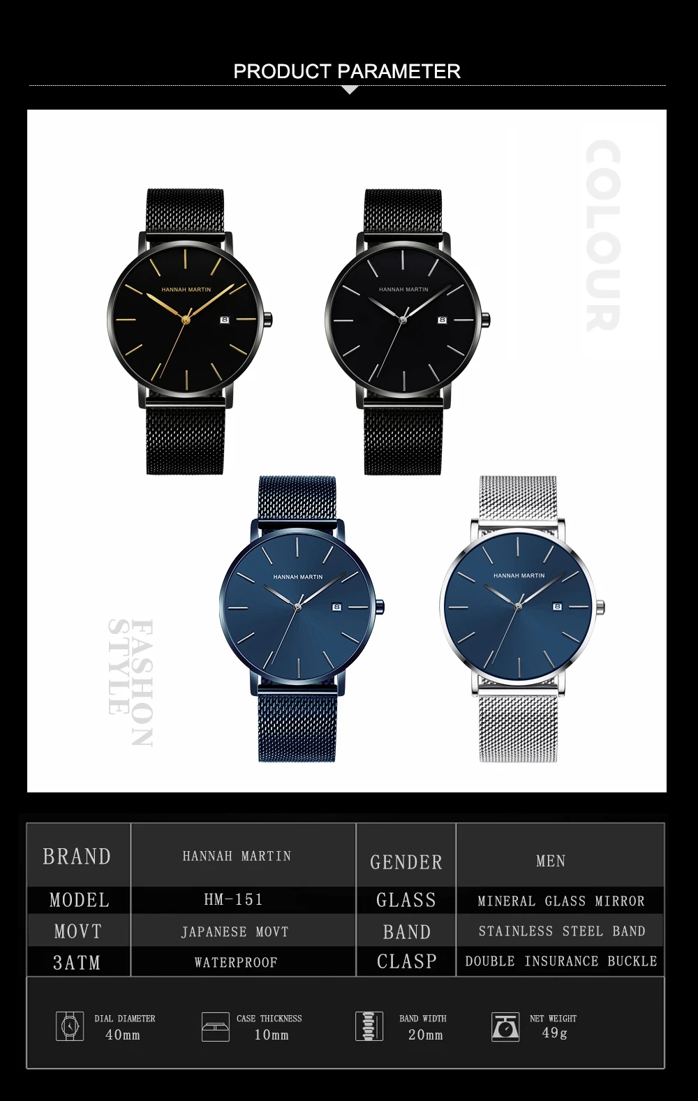 Часы Hannah Martin мужские ультратонкие, модные роскошные спортивны...