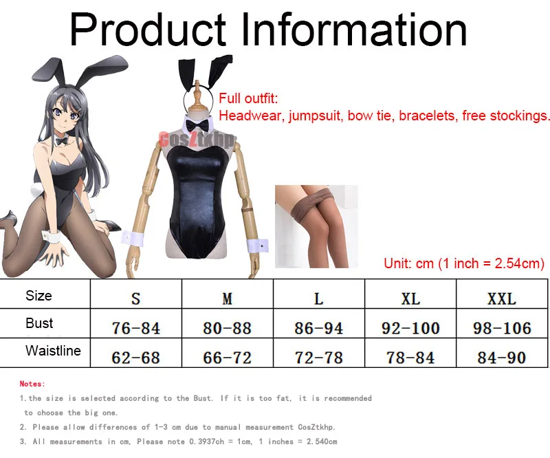 Аниме: Seishun Buta Yarou wa Bunny Girl Senpai no Yume wo MinaiПерсонаж: Sakurajima MaiОдежда включает в себя: головной убор, комбинезоны, галстуки-бабочки, аксессуары для рук, свободные чулки.Парик: длина 70 см, импортированная высокотемпературная проволока, внутренняя сетка розы, регулируемая окружность головы, Бесплатный парик.