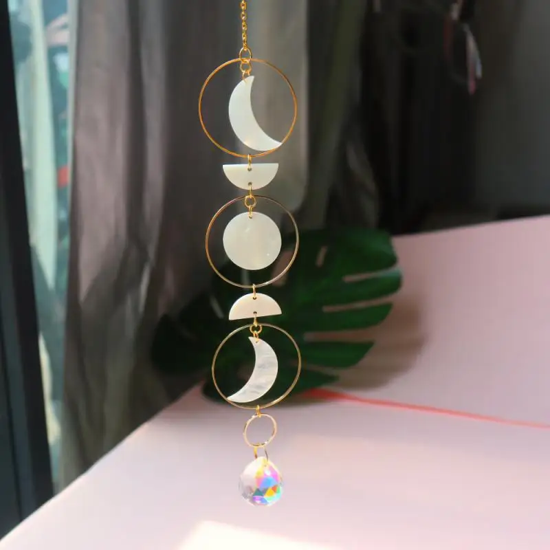 1 шт., Хрустальный Кулон-колокольчик, металлический обруч, луна, солнце, подвесная капля для улицы, дома, сделай сам, домашний декор, подарки