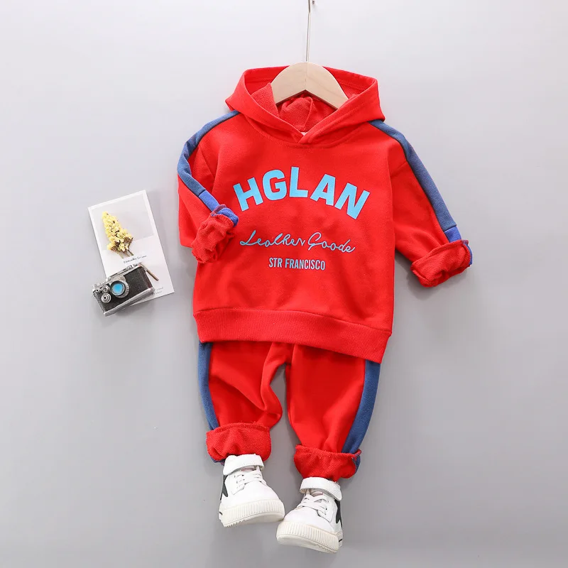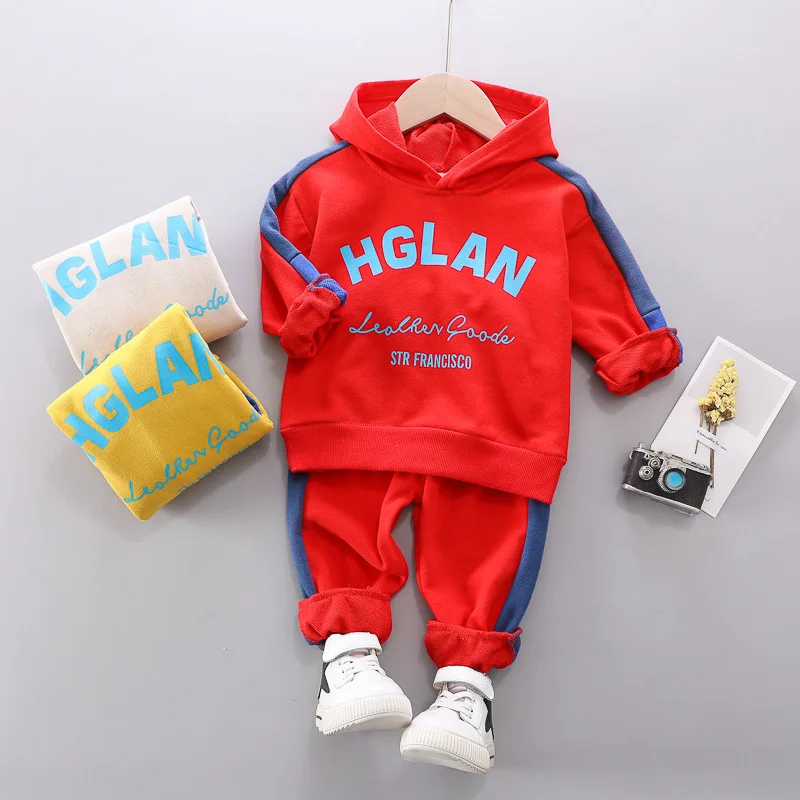 Детская одежда, костюм на весну и осень, свитер с длинным рукавом и капюшоном для маленьких мальчиков, спортивный костюм, повседневный костюм из 2 предметов для мальчиков