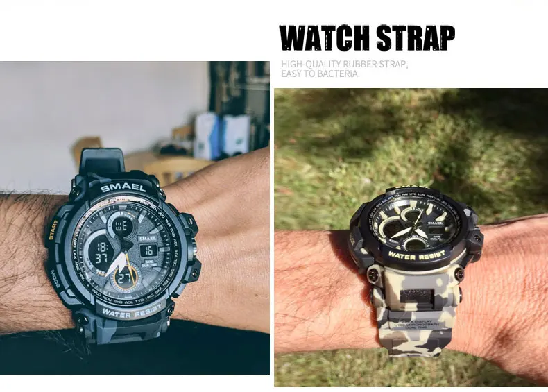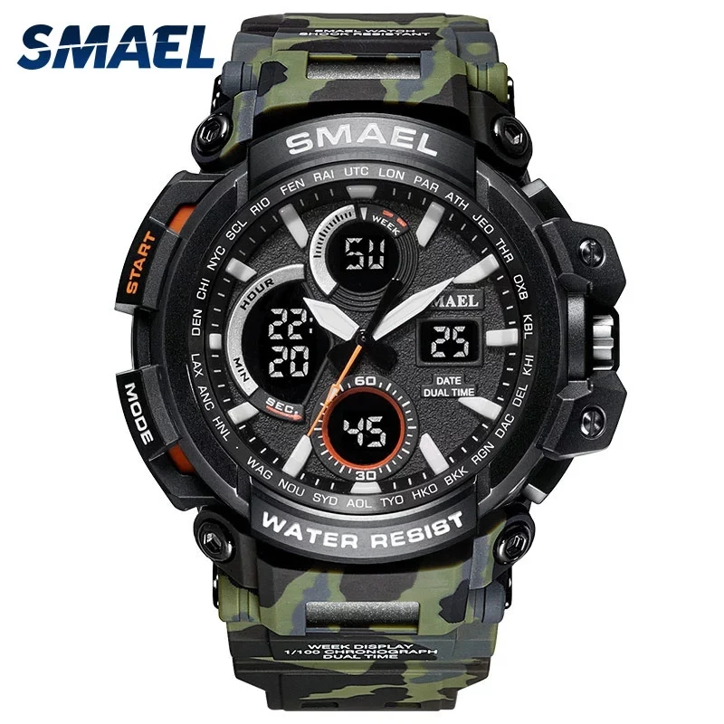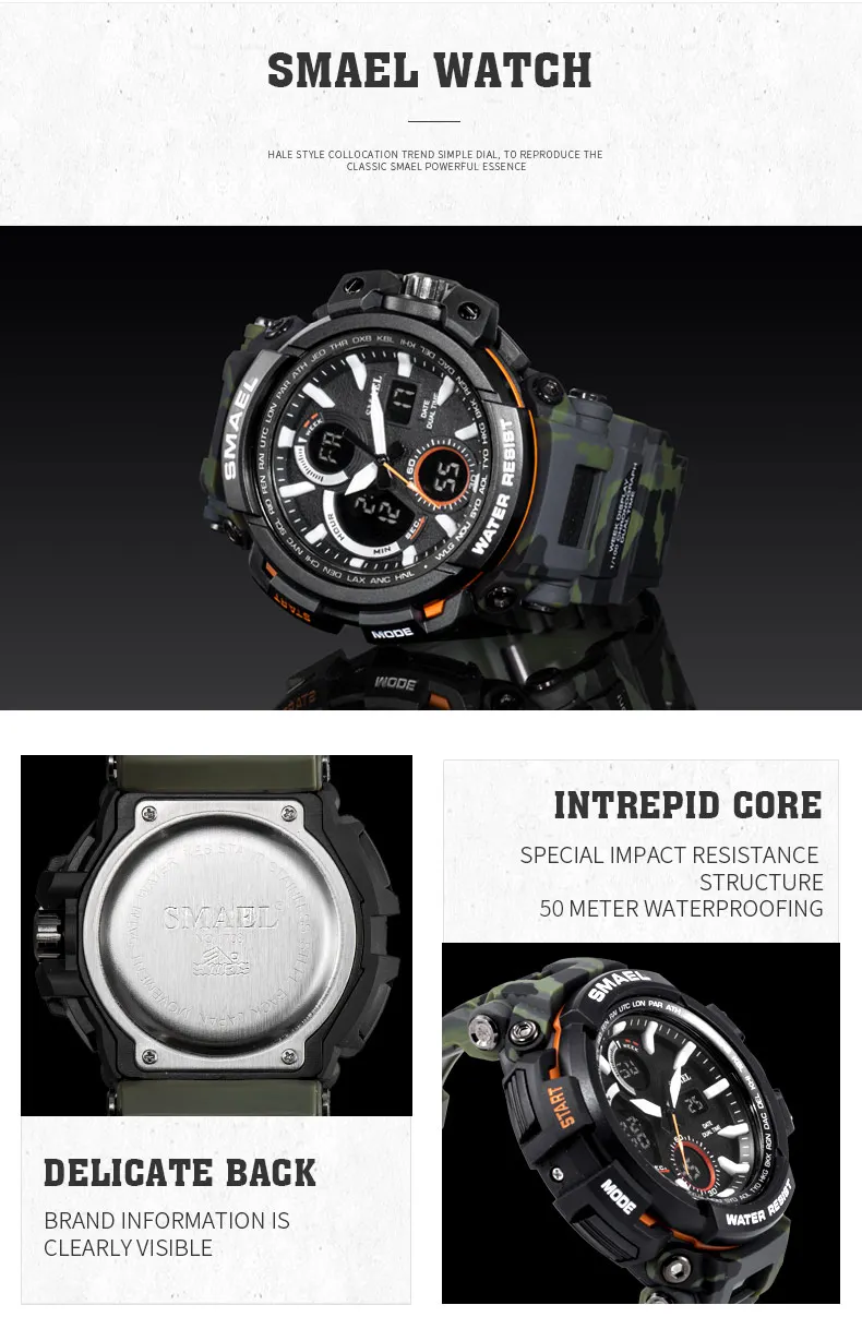 Часы SMAEL мужские электронные с цифровым дисплеем, спортивные автоматические обновленные водонепроницаемые с таймером и секундомером, 50 м