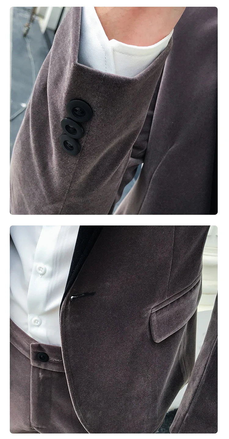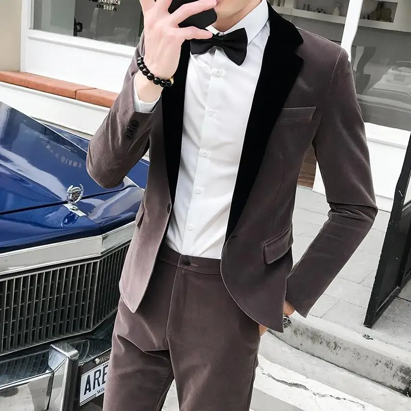 Классическое мужское платье свободного покроя, популярный бархатный костюм корейской версии красного, винного, черного, серого цвета, мужской свадебный Банкетный блейзер