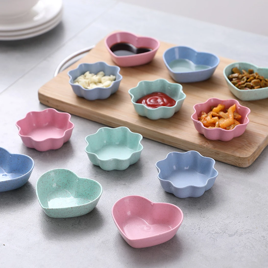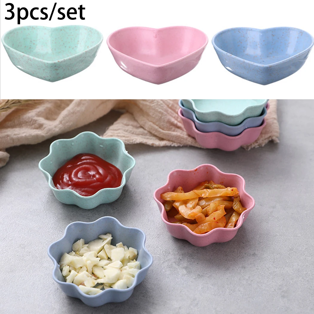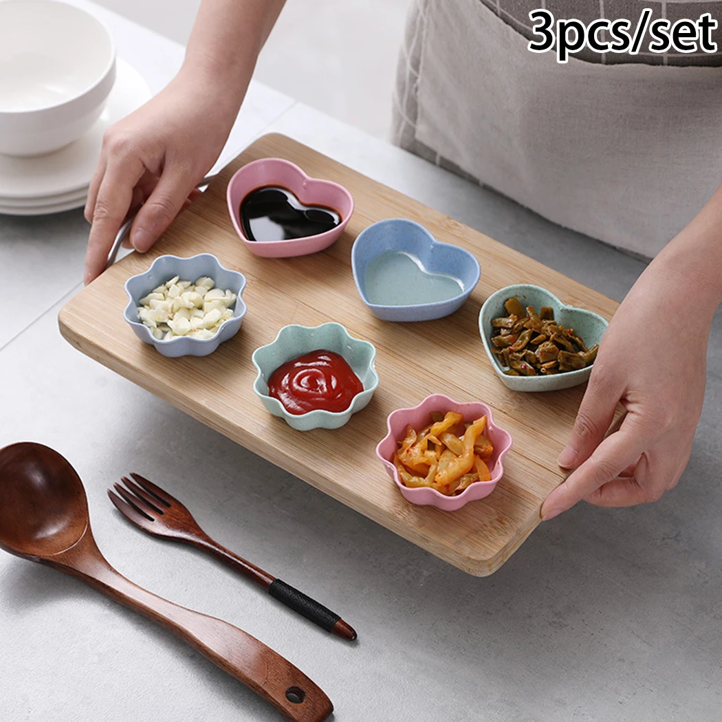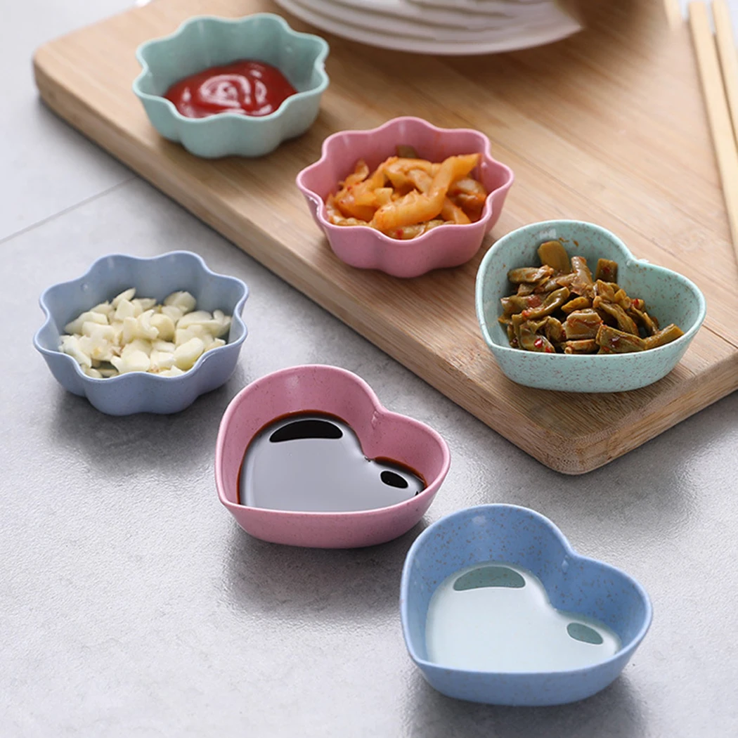 3 шт. Милая миска из пшеничной соломы в форме сердца уксус приправа твердая соевая тарелка соус Снэк маленькая тарелка кухонные принадлежности