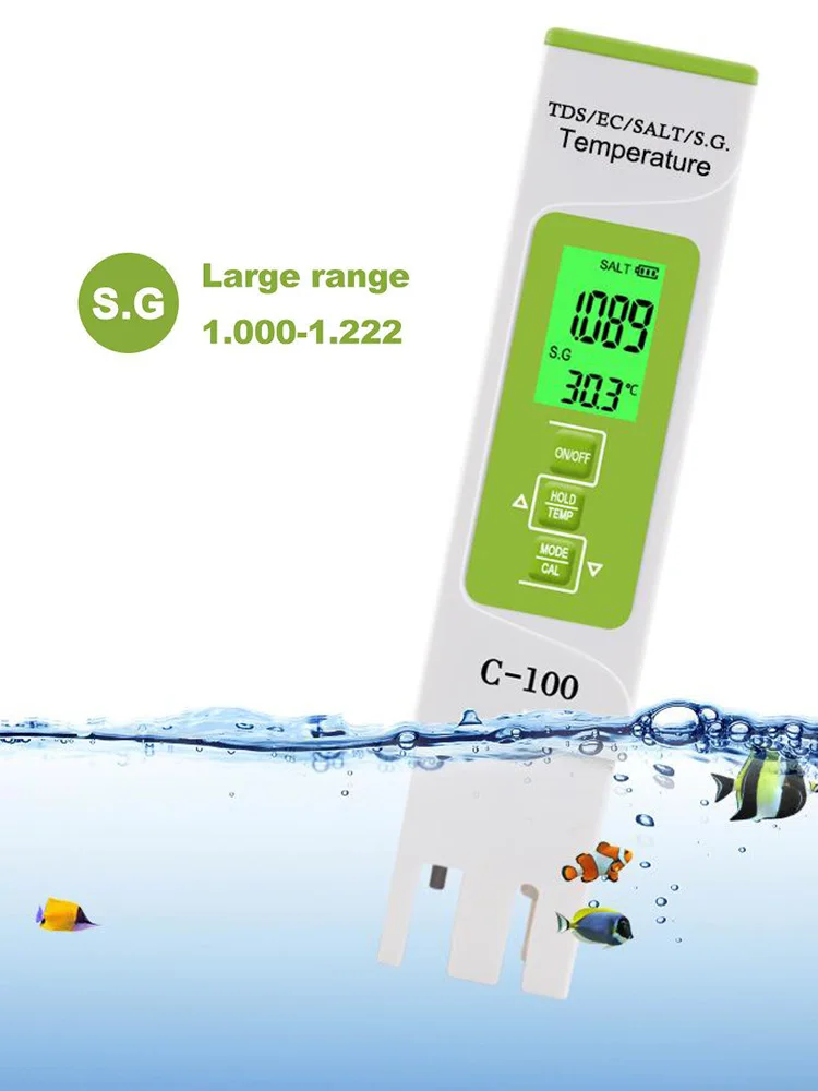 5 в 1 TDS/EC/соленость/S.G./измеритель температуры Цифровой Высокоточный тестер качества воды для аквариум для гидропоники бассейна и спа