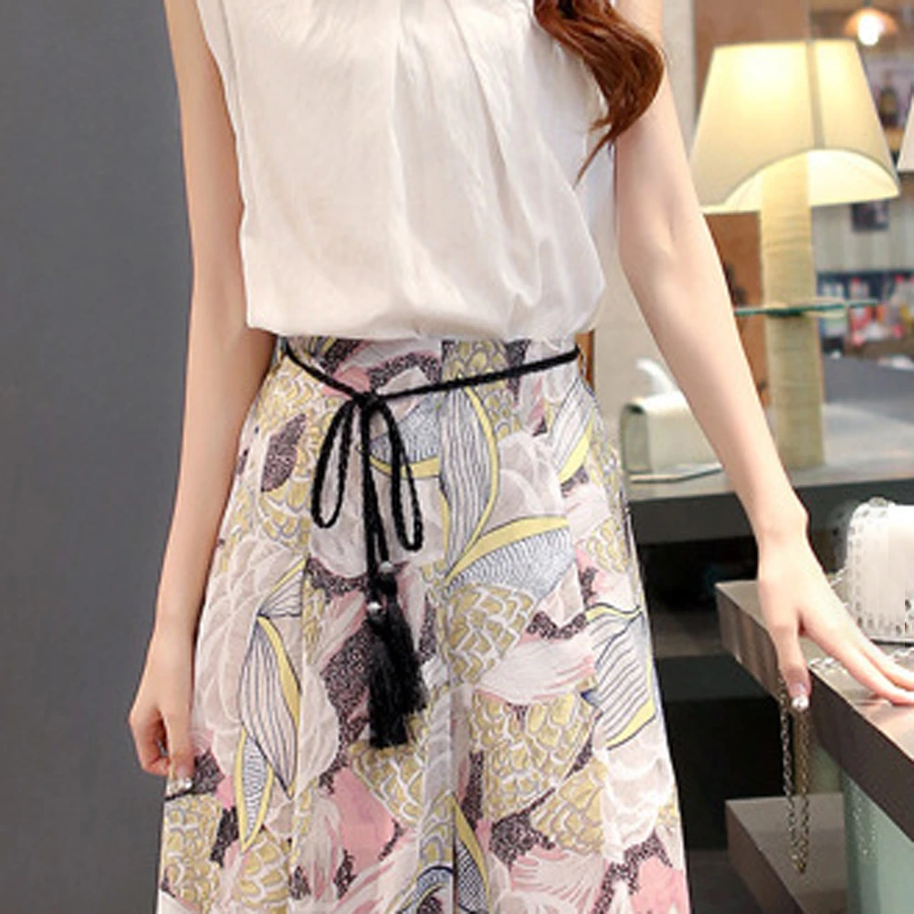 Женский плетеный пояс с кисточками, тонкий этнический пояс в китайском стиле, украшенный узлом, цепочка на талию для платьев, джинсов, женские ремни