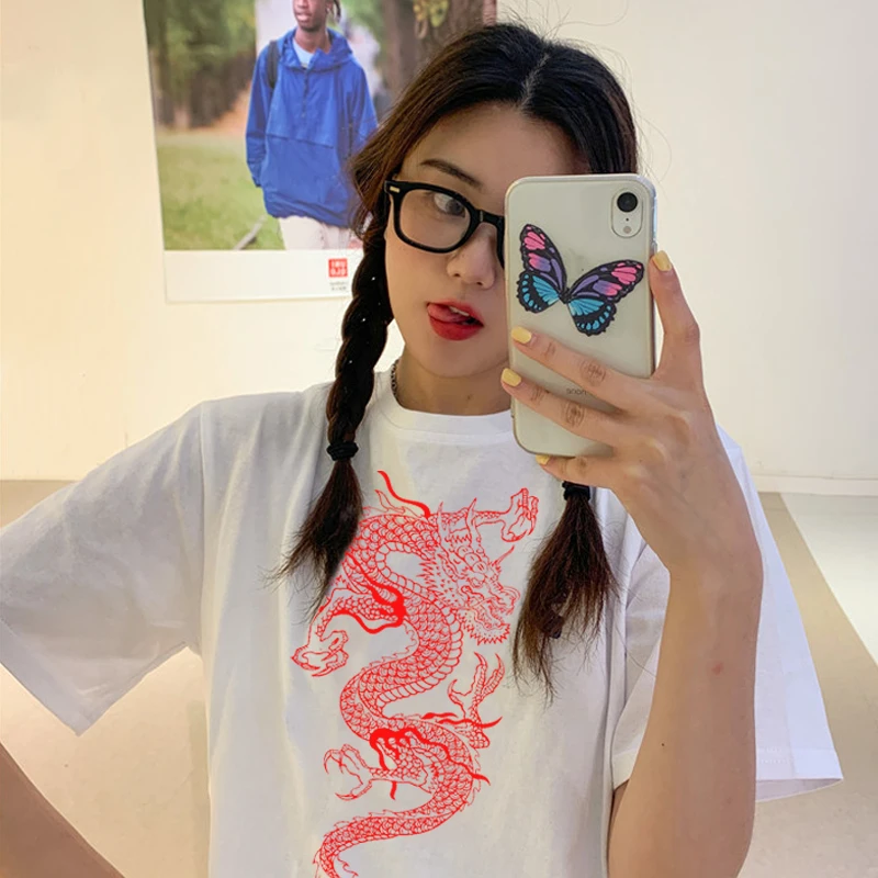 Женская футболка с принтом дракона, новая женская футболка в стиле Харадзюку, Винтажная Футболка большого размера с коротким рукавом, 2021