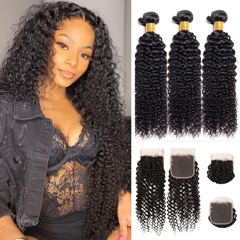 Перуанские вьющиеся человеческие волосы с кружевной застежкой 4x4, перуанпряди волос Remy с застежкой
