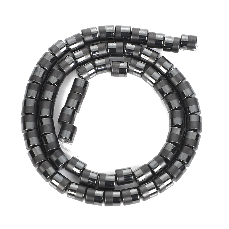 Цилиндрические черные гематитовые бусины из натурального камня, кру...