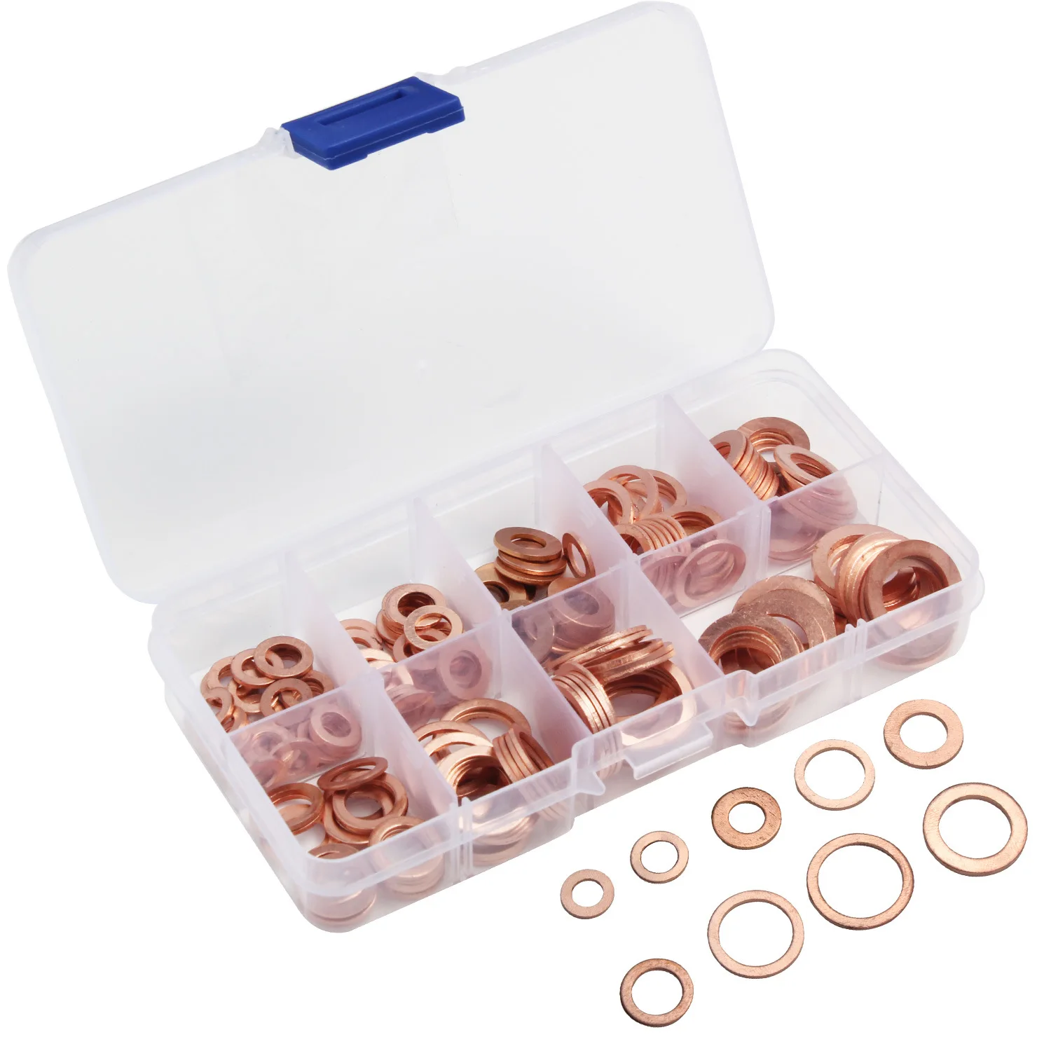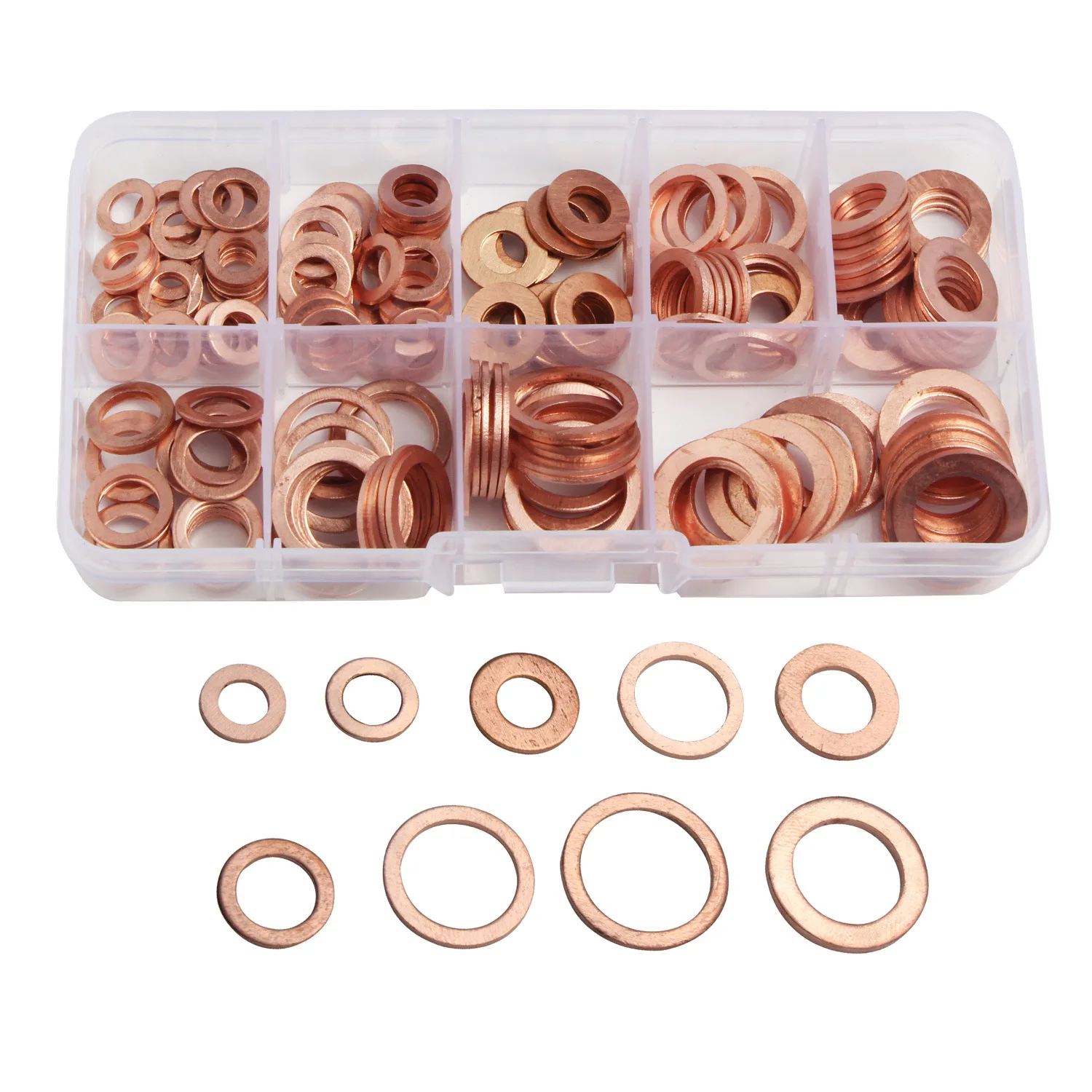 200 шт. набор медных шайб, прокладки, гайки и болты, набор уплотнительных колец с коробкой M5M6M8M10M12M14 для пробки отстойника