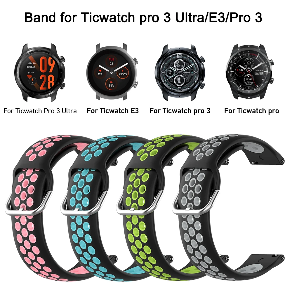 Ремешок силиконовый для Ticwatch Pro 3 Ultra GPS, сменный Браслет для часов Ticwatch E3 E2 Pro, аксессуары для часов
