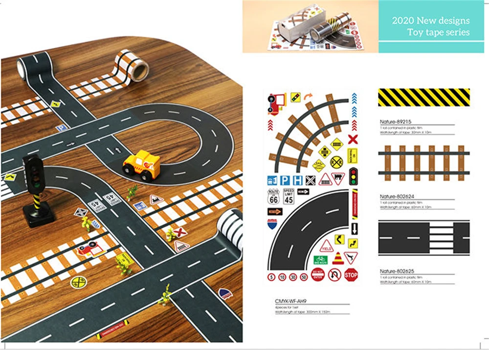 3 рулона * 10 м дорожная железная дорога, железнодорожная лента для детей, дорожная черная лента Washi, наборы детской ленты, наклейка на пол, стены, уличные изгибы