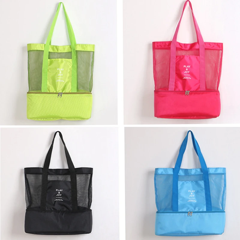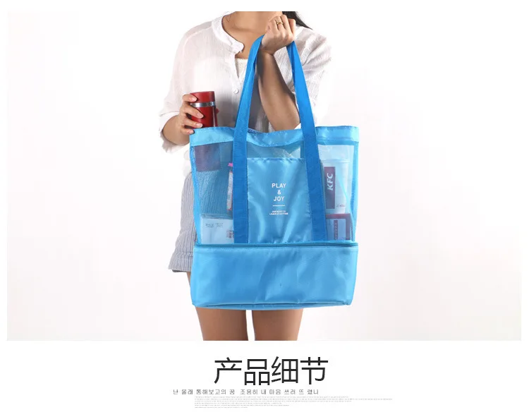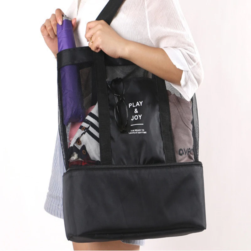 Вместительная женская сетчатая прозрачная сумка, органайзер для путешествий, двухслойный, для сохранения тепла, большая многофункциональная сумка для пикника и пляжа
