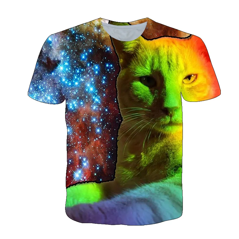 Футболка мужская с забавным рисунком кота, Повседневная дышащая футболка с 3d-рисунком, с круглым вырезом, в стиле хип-хоп, милый рисунок животного, Лето s