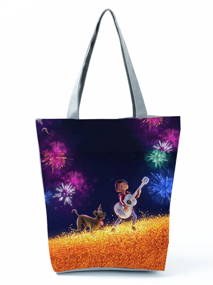 Disney Coco дизайнерская сумка с цветочным принтом, модная женская сумка-тоут, популярная Женская дорожная сумка для покупок, крутая Портативная сумка через плечо унисекс