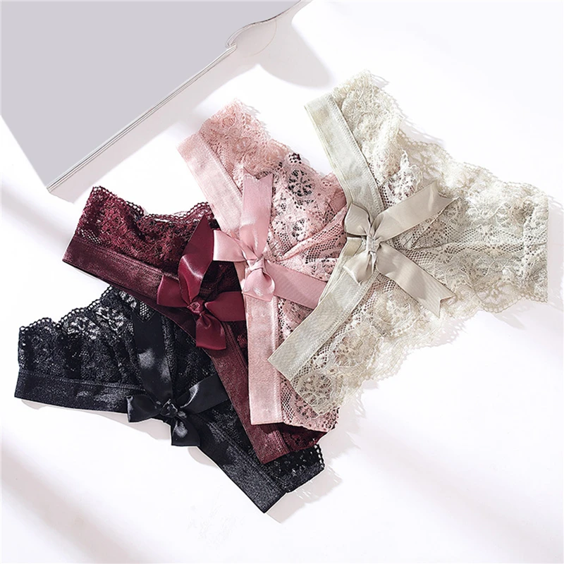 Женское нижнее белье, G-стринги, кружевное нижнее белье, женские сексуальные стринги с бантом и Т-образной спиной, женские прозрачные трусики с заниженной талией
