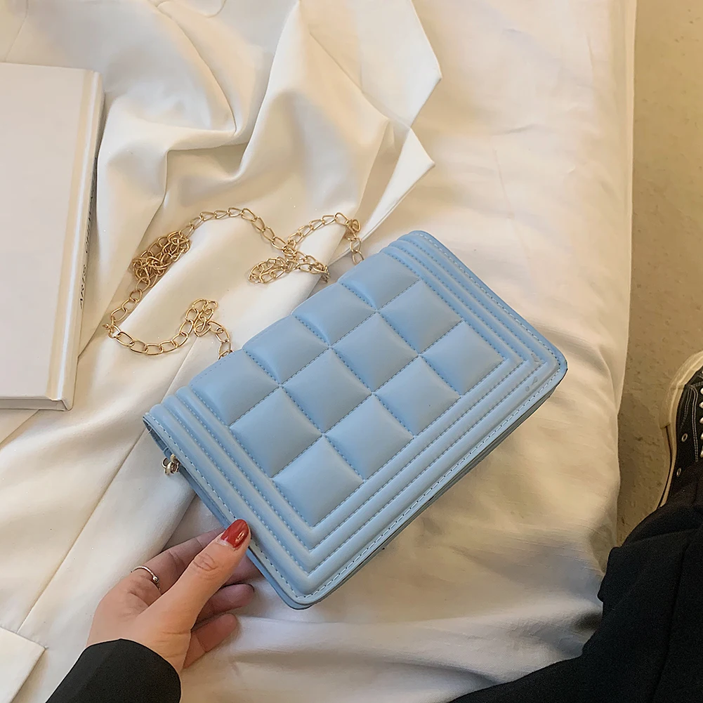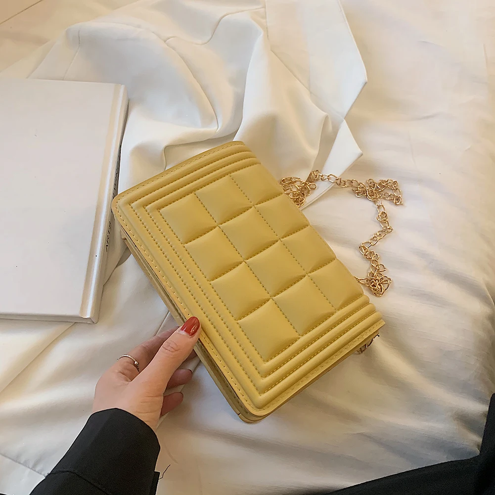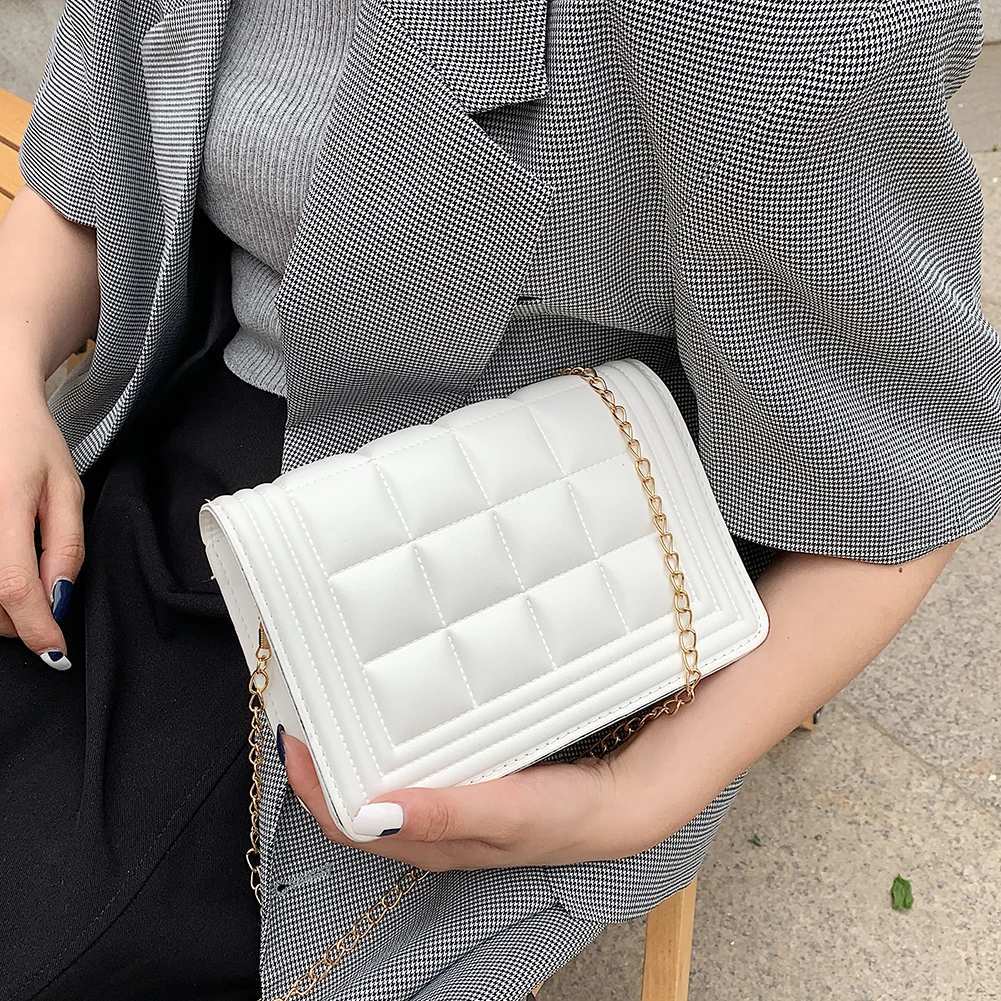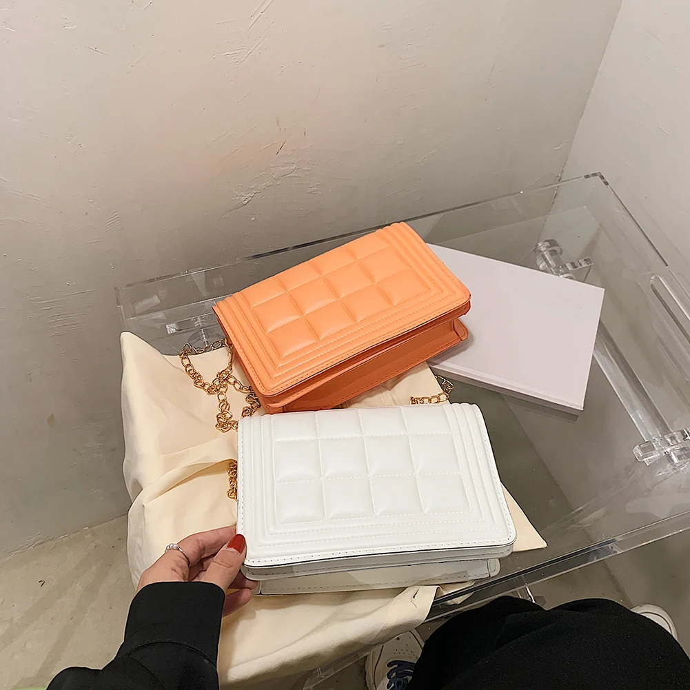 Модная женская однотонная сумка-мессенджер через плечо из искусственной кожи, повседневная женская мини-сумка с клапаном и узором в клетку, кошелек