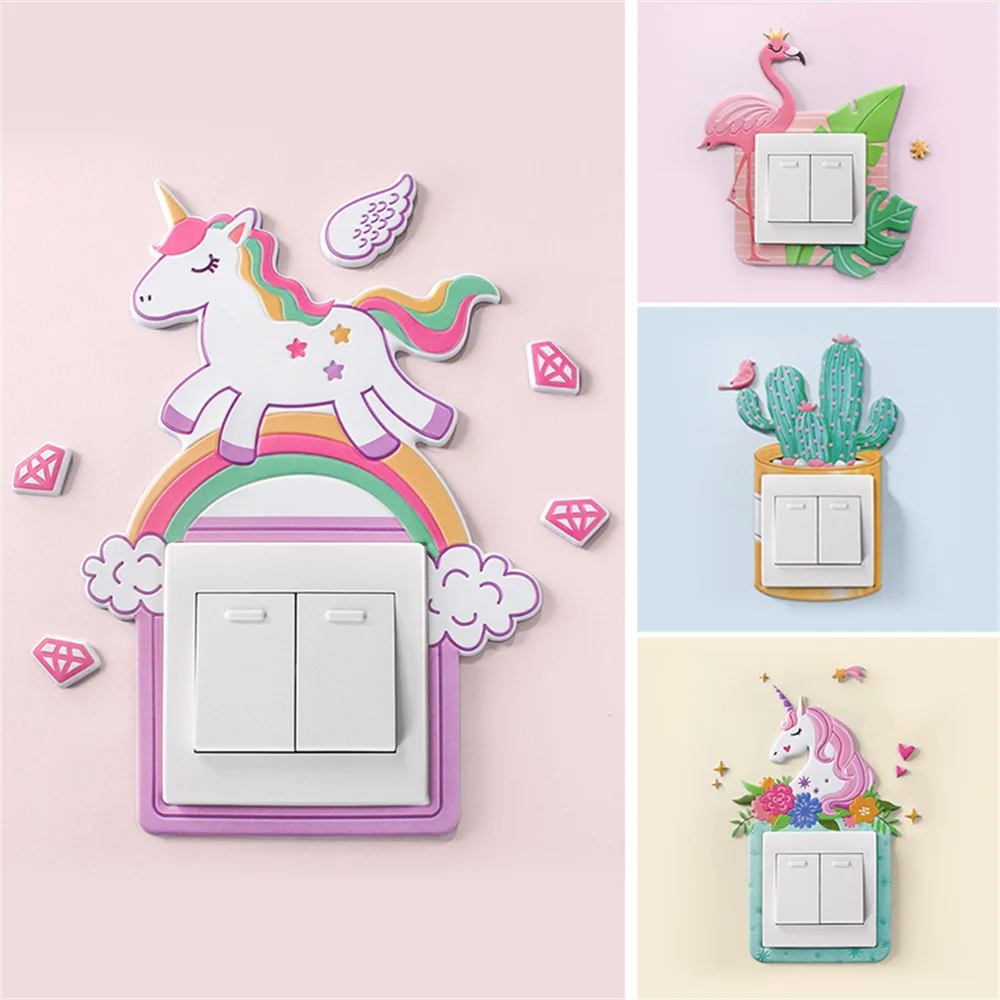 Наклейка на выключатель, животное, единорог, крышка, мультфильм, декор комнаты, 3d, силиконовая Наклейка на стену
