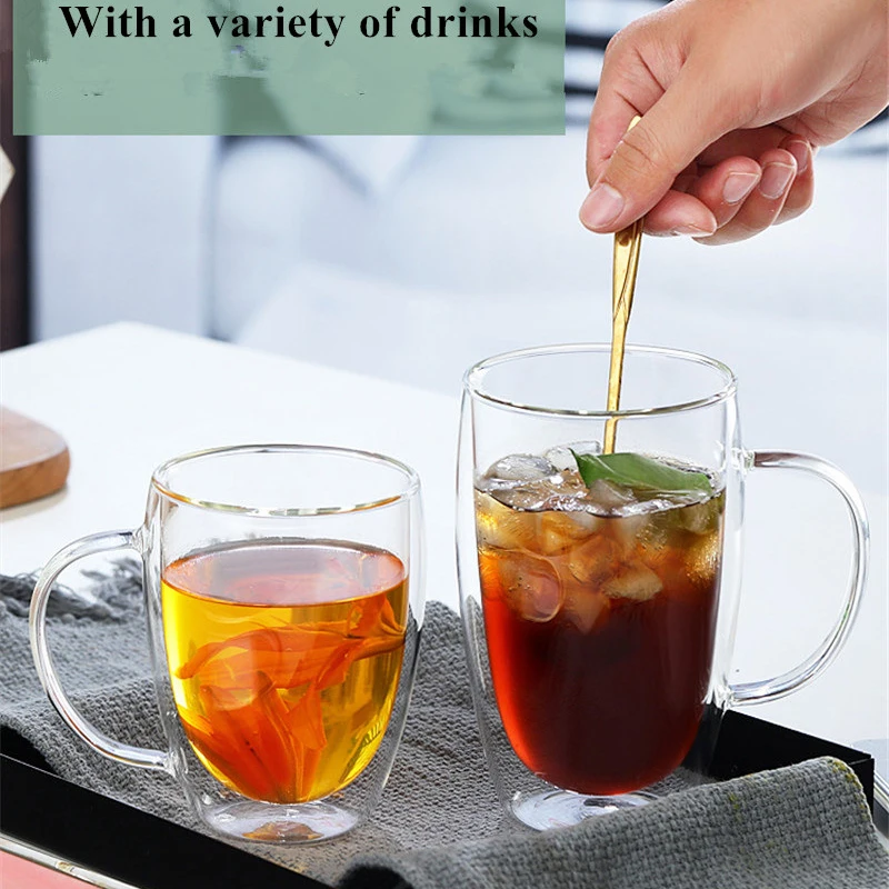 Стеклянная кружка с двойными стенками, устойчивая кружка для чая, п...