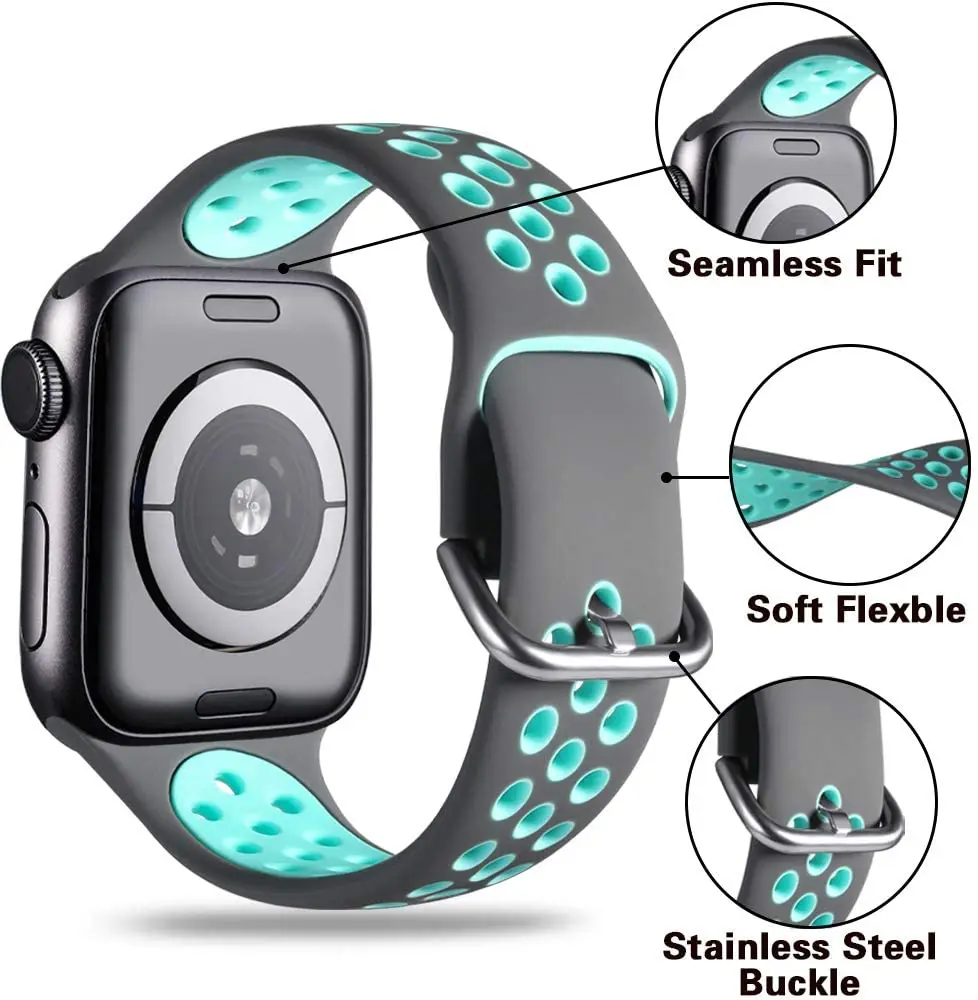 New Silicone Strap bands For iWatch series 6 se 5 4 3 44mm 40mm bre...