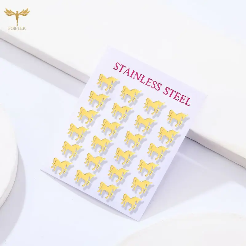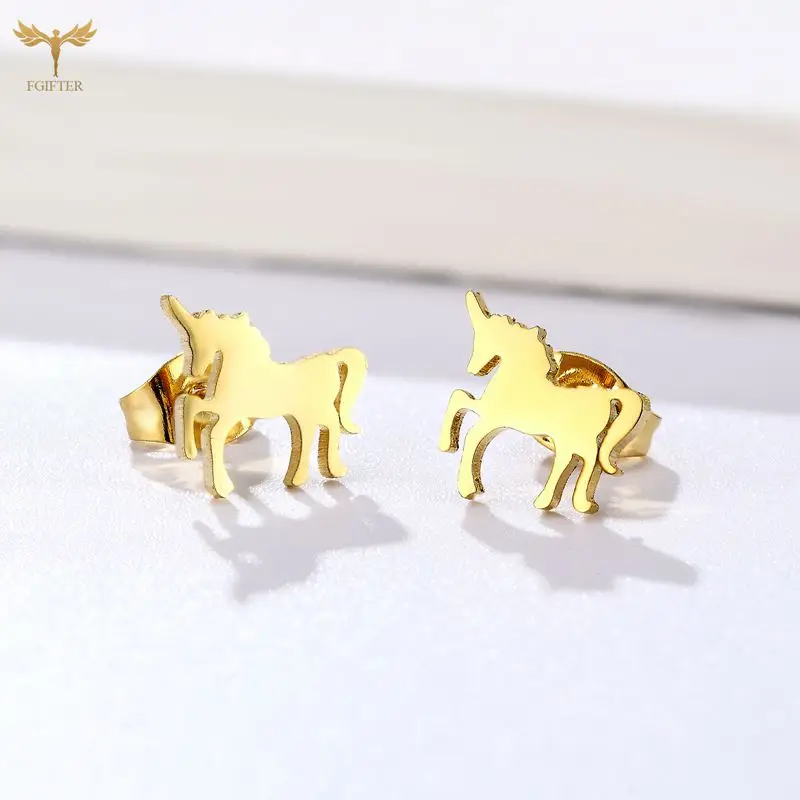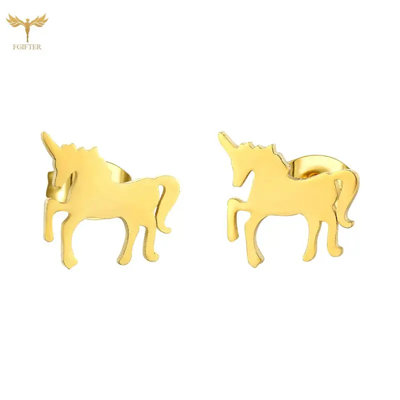 Серьги-гвоздики из нержавеющей стали с единорогом для девочек, позолоченные аксессуары 18 карат, милые ювелирные изделия с животными, подарки для женщин
