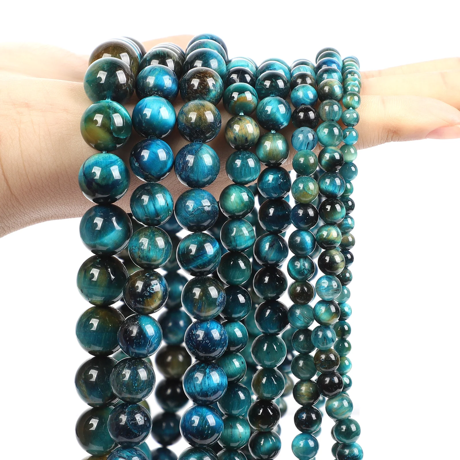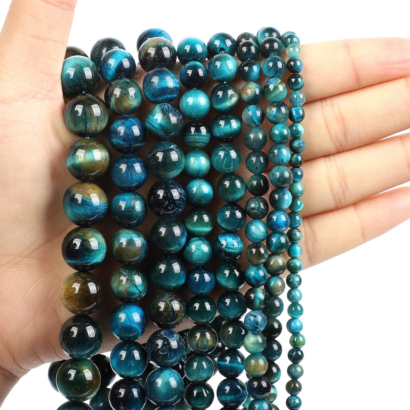 Синий тигровый глаз, бусины из натурального камня светильник-Голубы...
