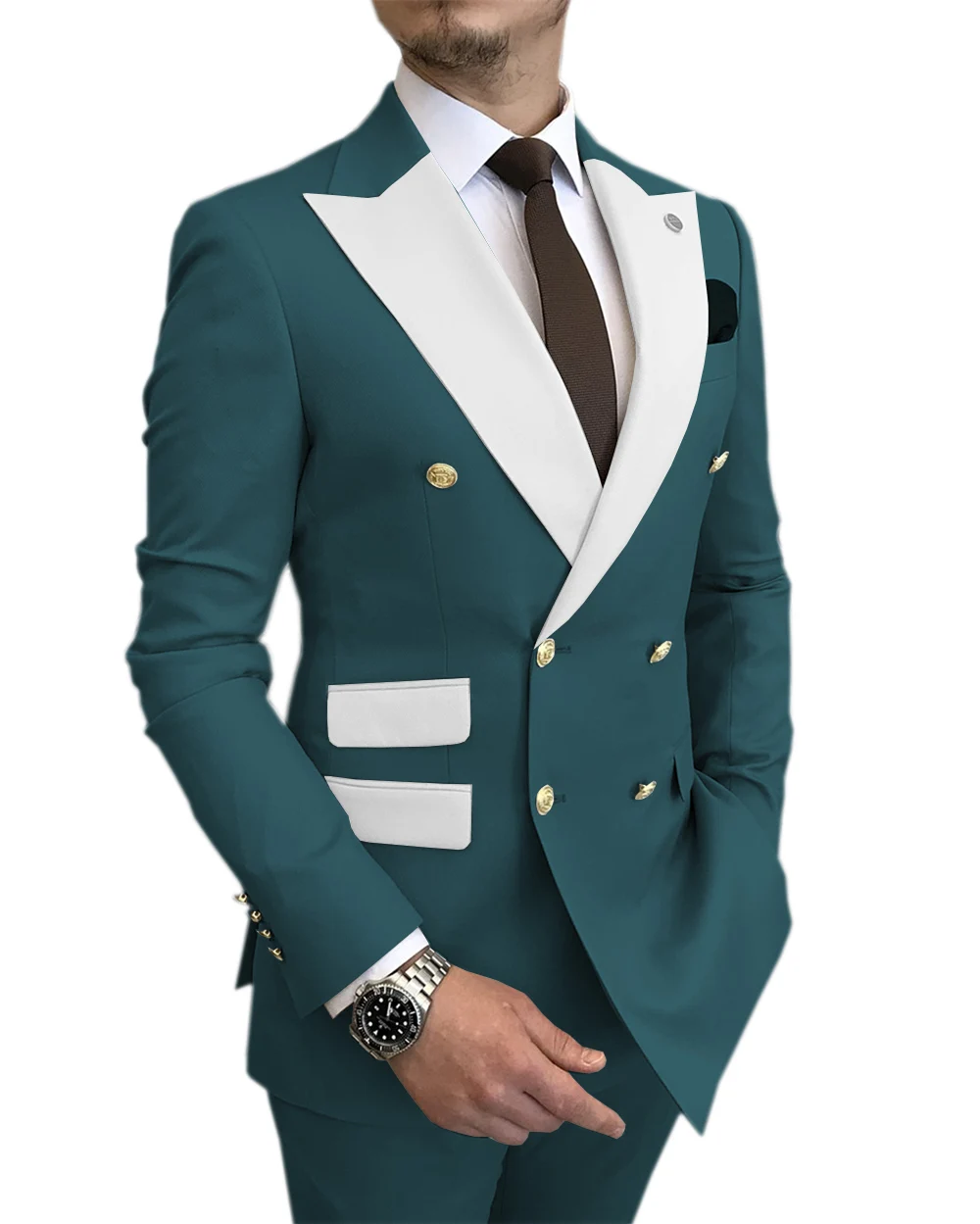 SOLOVEDRESS новый мужской костюм Королевский синий тонкий двубортный белый модный костюм с лацканами для жениха лучший мужской свадебный костюм (Блейзер + брюки) SX
