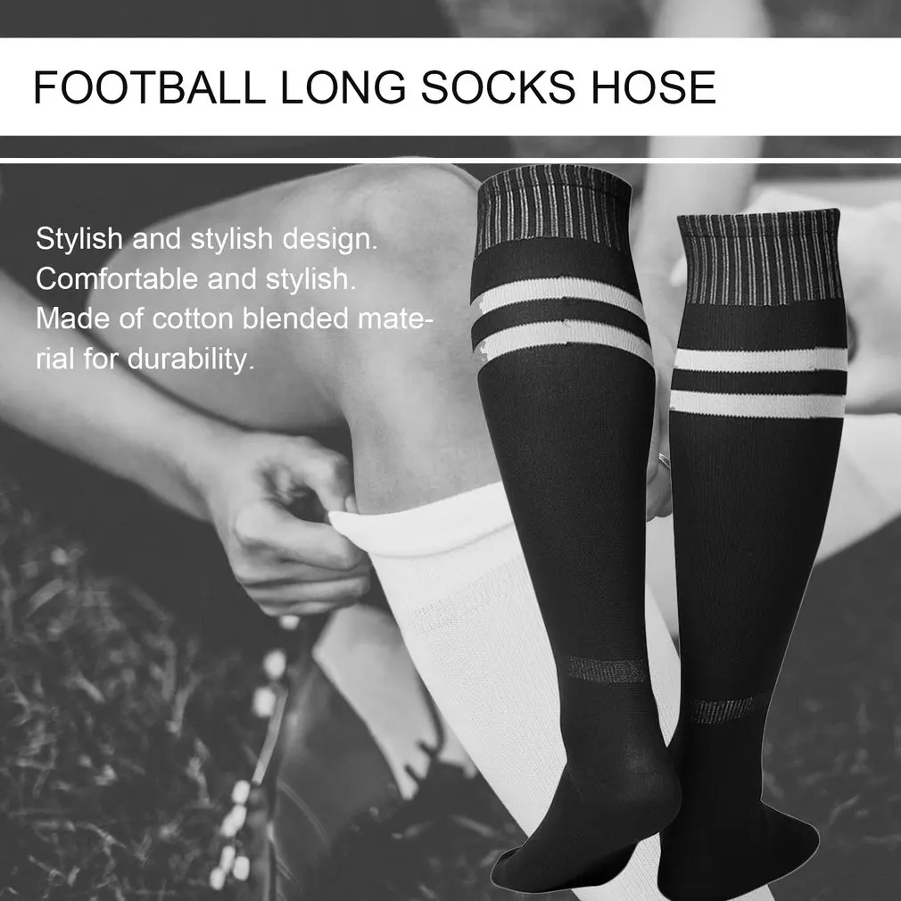 1 пара, новые футбольные носки, Нескользящие длинные носки выше колена, полосатые футбольные носки, компрессионные чулки, уличные спортивные носки для спортзала