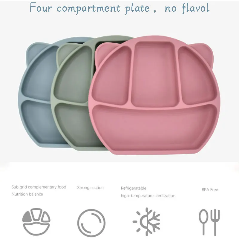 Милая Детская силиконовая тарелка в форме медведя, из пищевого силикона, без БФА, посуда для кормления детей, твердая детская обучающая посуда, Детские принадлежности