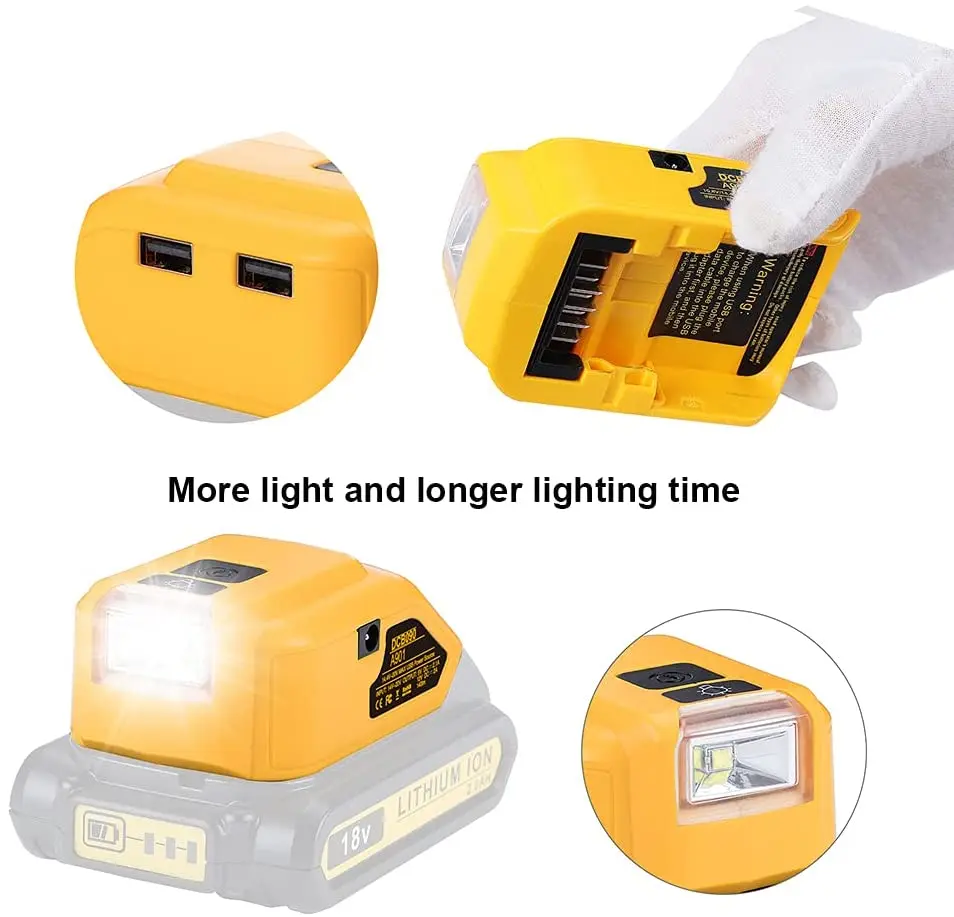 Адаптер для светодиодсветильник лампы, зарядное устройство USB, 12 В постоянного тока, выход для литий-ионной батареи Dewalt 14,4 В 18 в, DCB140 DCB183 DCB203