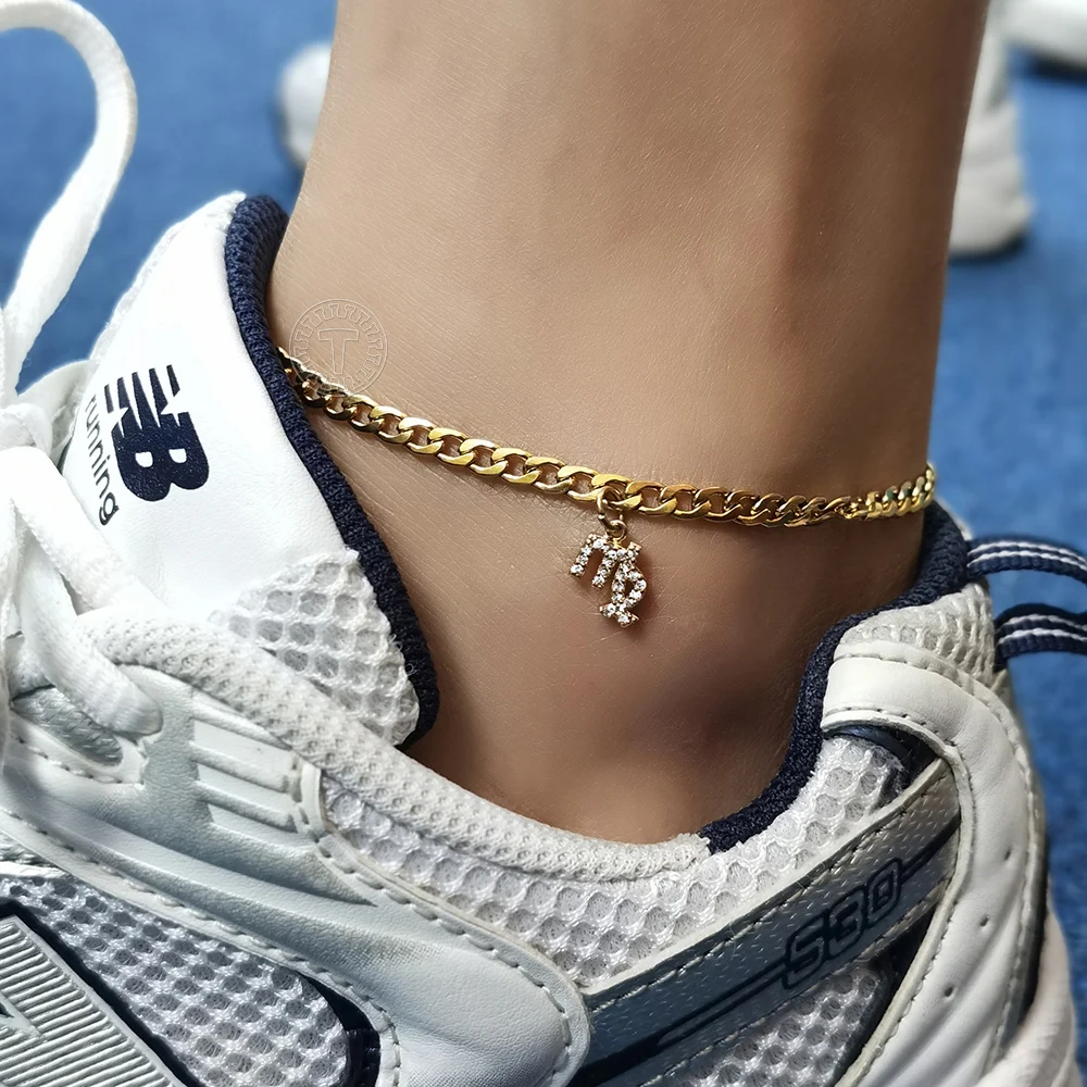 Уникальный Созвездие ножной браслет кристалл CZ Знак зодиака для женщин Лето Пляж босиком браслет лодыжки женская нога 2021 ювелирные изделия DA54