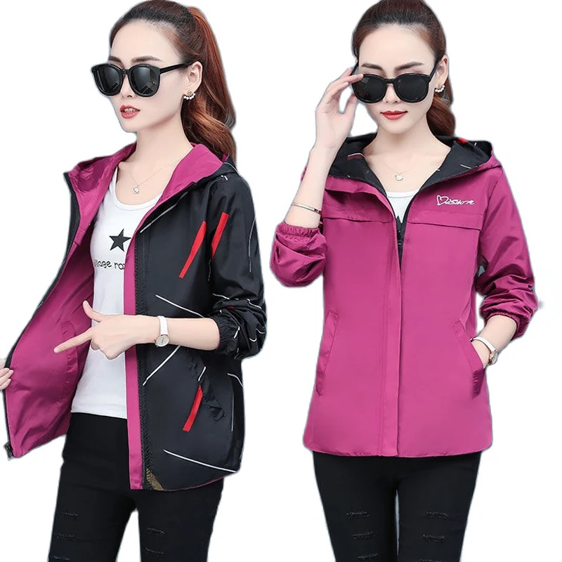 Модная двухсторонняя одежда с капюшоном, Женская куртка, Осень-зима 2021, свободная верхняя одежда с мультяшным принтом, повседневная женская ветровка на молнии, пальто